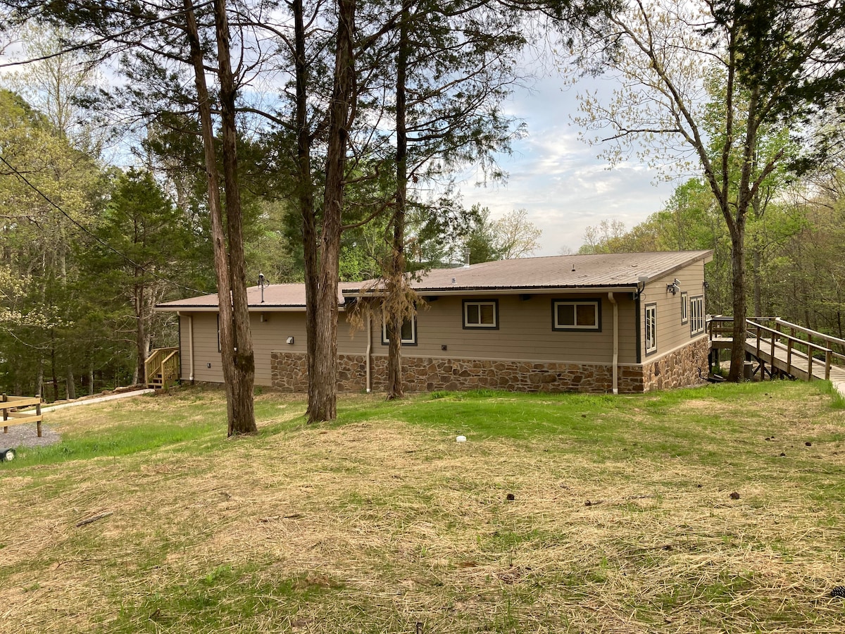 Escápate a Sugar Creek Lodge: un refugio privado frente al lago enclavado en el bosque sin vecinos a ambos lados. Disfruta de vistas tranquilas, dos cubiertas, un gran muelle privado con bote y moto acuática, kayaks, una chimenea y muebles nuevos. Internet de fibra rápida lo hace ideal para el trabajo a distancia. Tres niveles cada uno tiene un dormitorio y un baño completo. Cocina completamente surtida, 2 neveras, electrodomésticos nuevos y lavadora/secadora. A solo 5 minutos de la I-24 y a 10 minutos de comestibles: aislamiento total, pero cerca de todo.