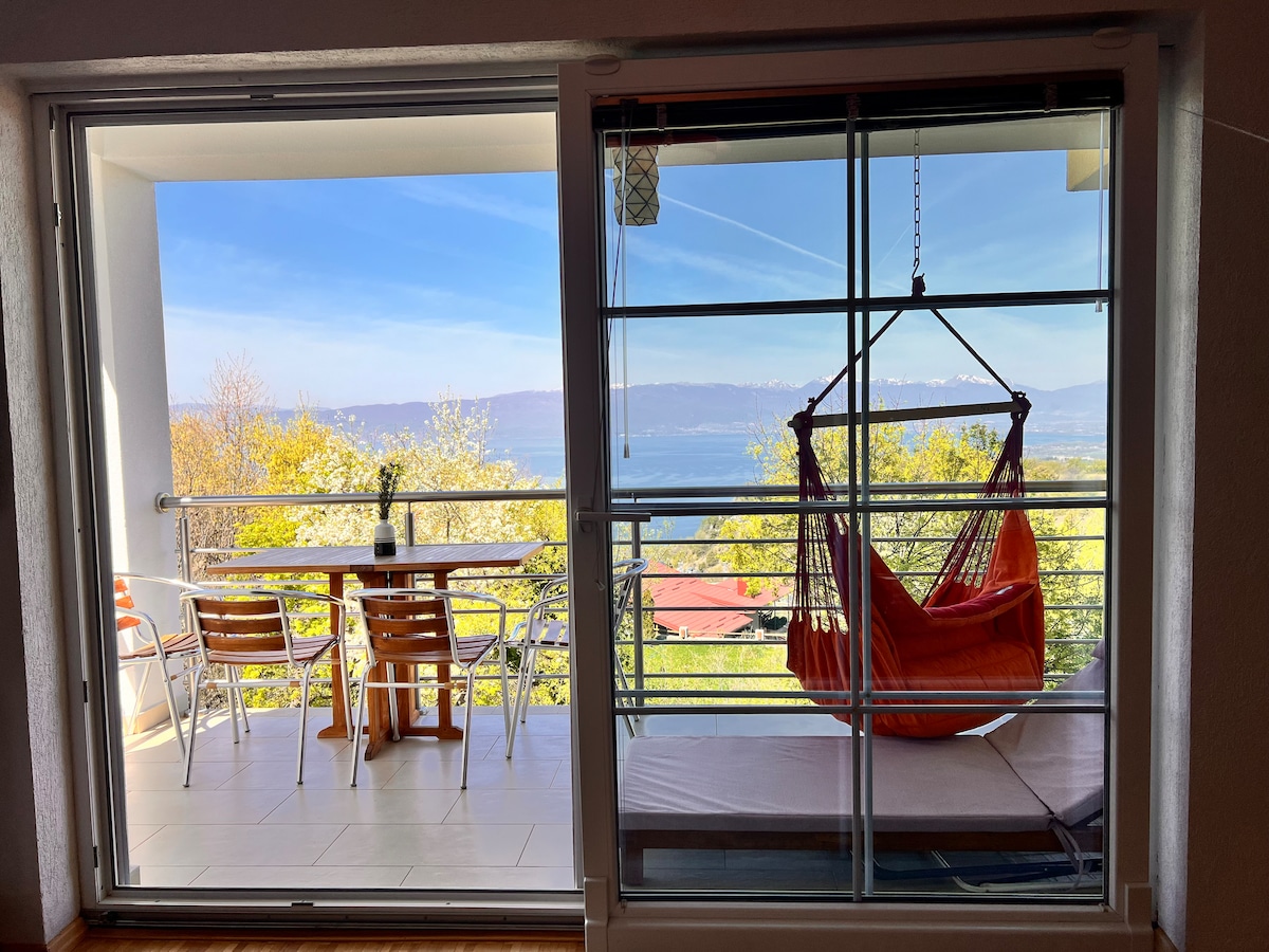 ¡Bienvenido a tu escapada a Ohrid! Nuestro acogedor apartamento turístico ofrece una vista impresionante del lago Ohrid y las montañas circundantes. Comienza el día con el paisaje mágico desde tu ventana o balcón. Por la noche, disfruta de nuestra zona de barbacoa bellamente diseñada, un espacio único hecho a mano perfecto para relajarse con amigos o familiares. Combinando comodidad, encanto y una ubicación inolvidable, este apartamento es la base ideal para tu estancia en Ohrid.