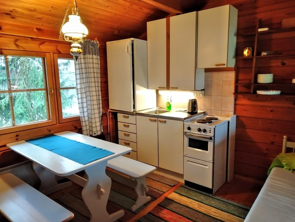 Refugio ecológico tranquilo y acogedor en el campo finlandés real. Situado en una pequeña granja ecológica con ganado salvavidas nativo finlandés. Si deseas interactuar con los animales (caballos, vacas, ovejas, pollo, gatos y un perro) la anfitriona te guiará con mucho gusto. En la cabaña hay una nevera, cocina y tetera. Encontrarás el aparcamiento junto a la cabaña. Instalaciones complementarias para preparar café y té. Ropa de cama y toallas incluidas.