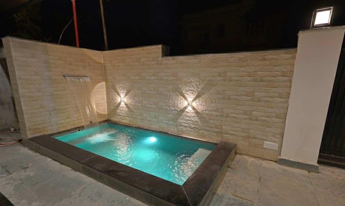 Imagina un acogedor refugio de 2 habitaciones con una piscina privada y unas vistas impresionantes del palacio de Sajjangarh. Ideal para una escapada tranquila, este refugio apto para mascotas cuenta con habitaciones bien equipadas y una impresionante terraza donde podrá disfrutar de las comidas con vistas a las colinas de Aravali. La terraza ofrece un rincón dedicado al yoga para disfrutar de momentos de calma y mucho espacio para la diversión y la aventura. Al caer la noche, reúnete junto a la hoguera bajo las estrellas y disfruta de una cena al aire libre: el final perfecto para un día perfecto.