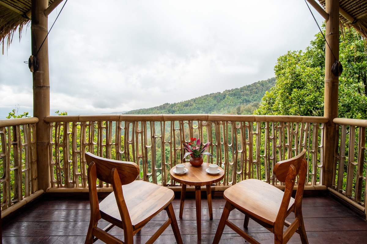 Experimenta una estancia única e inolvidable en el borde de las colinas, con impresionantes vistas al amanecer y a las montañas. Esta villa de bambú de un dormitorio está diseñada exclusivamente para parejas, escritores, viajeros solitarios, amantes de la paz o cualquier persona que ame y aprecie la naturaleza. Los aspectos más destacados de la villa incluyen una bañera al aire libre frente a la vista, una terraza de yoga perfecta para las sesiones al amanecer y una piscina de inmersión para la máxima relajación.