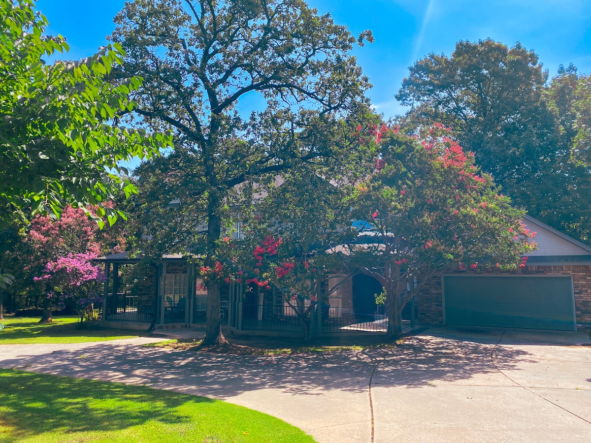 ¡Olvídate de tus preocupaciones en esta escapada perfecta! Experimenta la verdadera hospitalidad de Texas en nuestro espacioso refugio. Nuestro acogedor alojamiento ofrece un amplio espacio para que toda la familia se relaje y se divierta. Escápate del ajetreo de la vida cotidiana y relájate en un entorno sereno, con una impresionante vista del tranquilo estanque justo en tu patio trasero. Estamos a poca distancia en coche del lago Texoma y del casino Choctaw. Si estás planeando una fiesta, tenemos una zona de eventos que se alquila por separado. Ponte en contacto con el anfitrión.