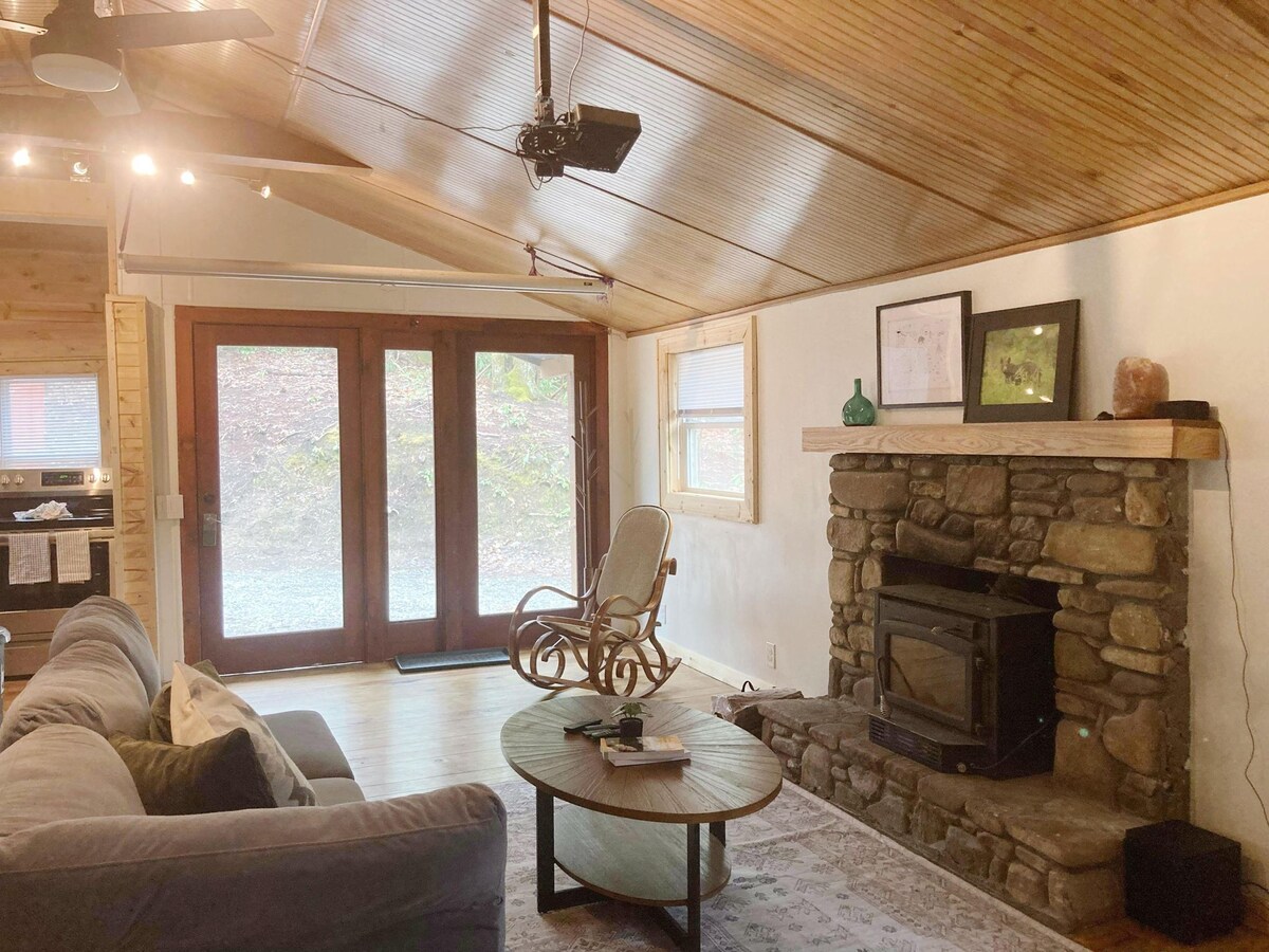 Beat the summer heat and enjoy the serenity of nature at this “Land of the Waterfalls” West NC retreat! Perched on a thickly wooded hillside secluded from neighbors, this cute cabin has the comforts of home in a quiet & private natural setting, perfect for a romantic getaway, a small family, or a group of friends reconnecting. After a day exploring the beautiful area, enjoy relaxing in your cozy cabin or roasting marshmallows at the fire pit!