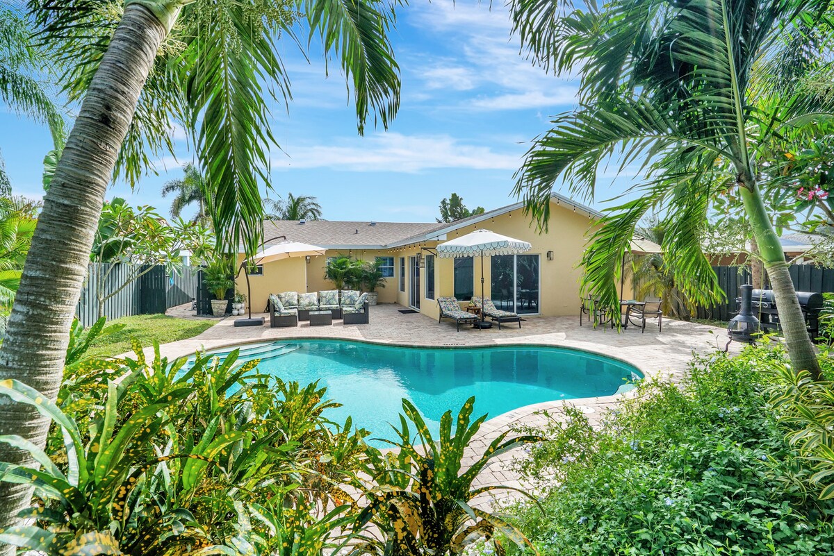 ¡Bienvenido a tu escapada perfecta a West Palm Beach! * A10 minutos del centro, el aeropuerto y la isla de Palm Beach. *Capacidad cómoda para 7 personas (cama tamaño king, queen, camas individuales (2), cama extraíble) *Patio trasero con césped con jacuzzi, minigolf, fogata, parrilla, bar tiki, cornhole, bochas *Sala de juegos con Pacman, Galaga, Golden Tee, Nintendo Switch, juegos de mesa * Interior recién remodelado (3BD/2BA) *Cocina totalmente cargada con cafetería. *Equipo de playa y pickleball (sillas, toallas, sombrilla, hielera, pelota de espiga) *A pocas cuadras del campo de golf “The Park”.