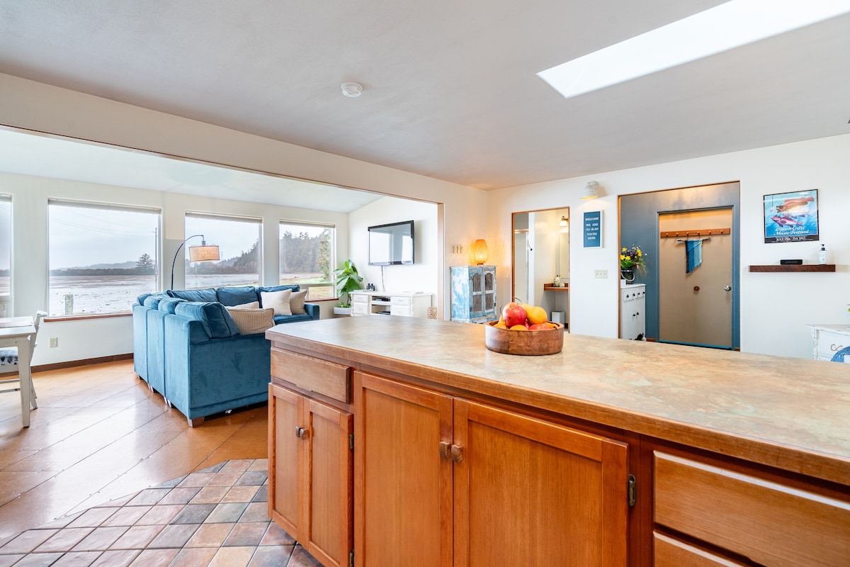 Disfruta de hermosas vistas de la bahía y puestas de sol impresionantes a través de los grandes ventanales que te dan la bienvenida a Bayview House. Observa la vida silvestre local, incluidos ciervos y una variedad de aves, mientras tomas tu café por la mañana. La chimenea al aire libre frente al mar es el lugar perfecto para asar s'mores y relajarse después de un día de aventuras en las playas cercanas, lagos, dunas e interminables rutas de senderismo. Todo lo que necesitas para preparar un tentempié rápido o una comida gourmet se proporciona en la cocina luminosa y totalmente equipada. Las camas con cubierta de espuma viscoelástica, sábanas 100 % de algodón y toallas mullidas ayudan a garantizar una estancia cómoda. Encontrarás todo lo que necesitas para sentirte como en casa, como televisores inteligentes con cable, wifi de alta velocidad, lavadora y secadora, artículos de aseo, una sala de juegos con futbolín y muchos juegos de mesa, rompecabezas, libros y juguetes para niños. ¡Bayview Home es un lugar ideal para que una familia o grupo de amigos disfruten de la hermosa costa sur de Oregón! La casa Bayview también se puede alquilar junto con la casa de campo Bayview, una casa más pequeña con capacidad para 4 personas y que se encuentra justo al lado. Considera alquilar ambas casas juntas para fiestas más grandes o una reunión donde las familias puedan querer su propio espacio. Juntas, ambas casas pueden alojar fiestas de 8 personas y cada casa tiene una cocina completa y una lavadora/secadora. La casa Bayview tiene una hermosa zona al aire libre que incluye un pozo de fuego, un banco y una mesa. Durante la marea alta, puedes hacer surf de remo o kayak directamente desde el patio trasero. Hay senderos que se dirigen alrededor de la bahía. ¡La vida silvestre, incluidas las garzas, los ciervos y los gansos, a menudo visita la parte trasera! Estoy disponible por teléfono, SMS o correo electrónico en cualquier momento durante tu estancia. Vivo cerca si necesitas algo mientras estás en la casa. La casa se encuentra a pocas manzanas del centro de North Bend, una pequeña ciudad costera con tiendas, restaurantes, tiendas de antigüedades y pubs. Situada al final de una carretera tranquila junto a un parque natural que ofrece amplias oportunidades para observar la vida silvestre, incluidos ciervos y muchas aves. A poca distancia en coche de varias playas y dunas de arena para un día lleno de aventuras al aire libre. Hay mucho aparcamiento disponible para tus juguetes, incluidos barcos y remolques. ¡El mundialmente famoso campo de golf Bandon Dunes está a menos de 30 minutos en coche! Convenientemente ubicado a pocas manzanas de la carretera costera escénica y a 5 minutos en coche del aeropuerto de North Bend. La casa es totalmente accesible para discapacitados con una rampa hasta la puerta principal y puertas extra anchas en toda la casa. Ten en cuenta también que no hay barrera entre el patio y el agua (con marea alta). Los niños deberán ser supervisados para garantizar su seguridad.