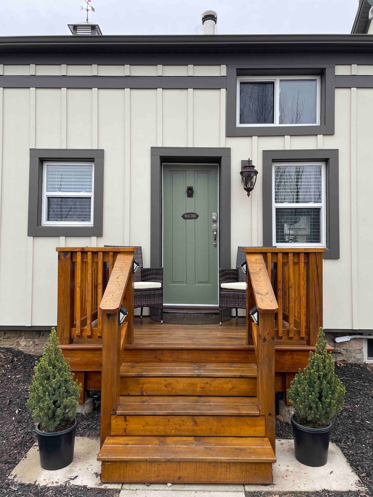 Enjoy the sounds of nature when you stay in this unique place. Our newly renovated "Valley View, Container Home" in beautiful Niagara at Inn The Orchard, has been designed with all luxuries of home but created guaranteeing a relaxing atmosphere and simplicity that you'll never forget. We love creating spaces allowing you to escape the city and be surrounded by nature while remaining in the heart of Niagara's Wine Country! Enjoy this unique spot surrounded by fruit orchards on the valley edge.