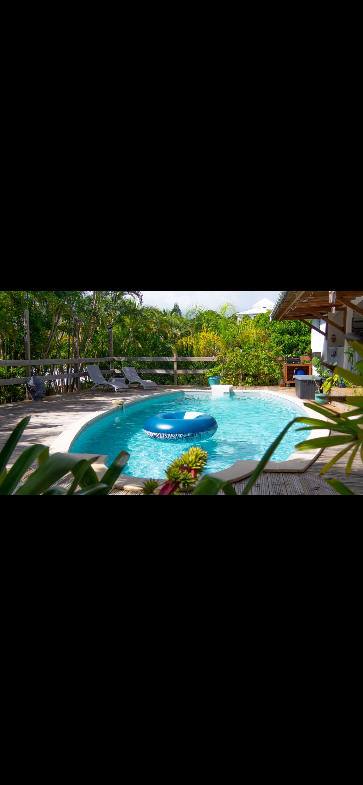 Pour un moment de détente entre amis ou en famille, découvrez TiKaz à Voyaj, ses 4 bungalows, sa villa, son studio et sa belle piscine face à la Caraïbe. Ti Kawane dispose de 2 chambres : une avec un lit double en 140 et une autre avec trois lits simples, une salle d’eau avec douche à l’italienne et des WC séparés. Une cuisine équipée, changée fin octobre 2023 avec four, plaque à induction sur la terrasse de 19m2 vous permet de préparer vos repas face à une vue imprenable sur la Caraïbe.
