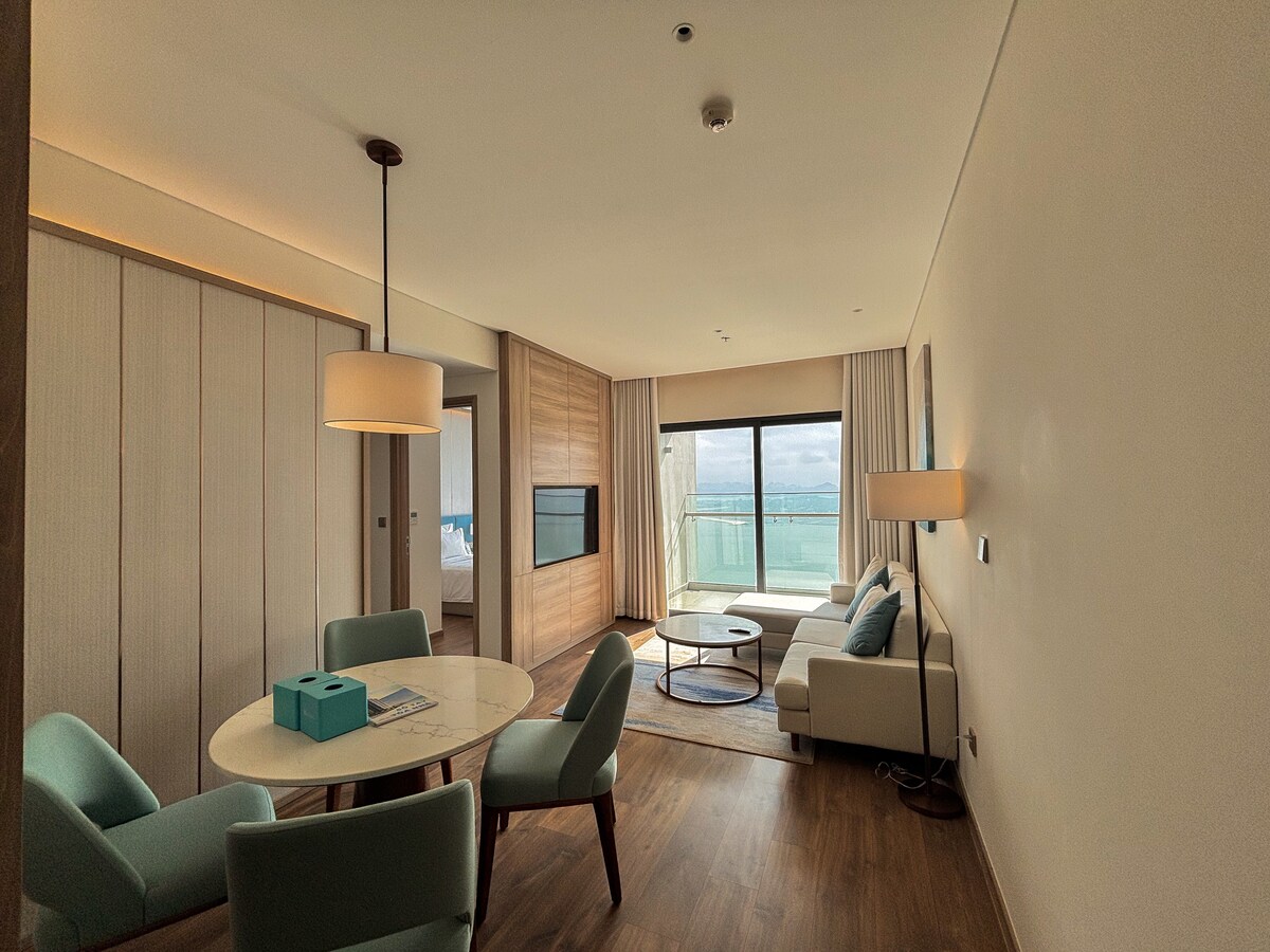 Located next to InterContinental Halong Bay Resort, this 45 SQM fully furnished Studio with breathtaking seaview of Ha Long Bay from the high floor. It's very convenient with full services for relaxing & entertainment & food at exclusive rate for guests staying here and perfectly on the beautiful beach. 🏊♂️Please note that room rate does not include pool, jacuzzi, gym, spa & breakfast which are managed by the 5* à la carte hotel. You can buy tickets at the reception at the resident rate.