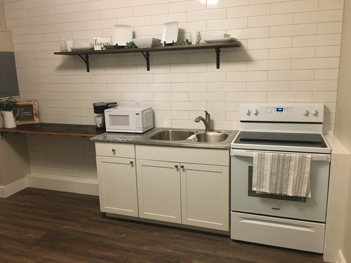 Ubicado en la planta baja de nuestra residencia principal con su propia entrada independiente, este apartamento tipo estudio totalmente equipado fue construido en la zona original del establo de una casa de carruajes de 150 años. Aparcamiento en el lugar en un barrio seguro de apartamentos de almacén convertidos de alta gama. A pocos pasos de Excelsior, Marriot, Central Market, Tellus360, Fulton Opera House, galerías de arte y todo lo que ofrece la ciudad de Lancaster. No se permite fumar y las mascotas son bienvenidas por un cargo adicional de 20 USD.
