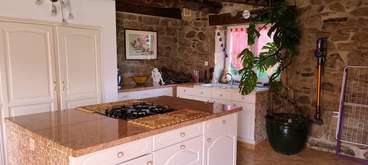 ¡Estaremos encantados de recibirle en Kerguen! La casa de campo propuesta está clasificada como «alojamiento de turismo 2 **» por el organismo OT 29. Se encuentra en una casa de piedra y tiene capacidad para 1 a 6 personas. Será un «lugar de recursos» donde disfrutará de la tranquilidad y la naturaleza al regresar de sus escapadas. Estamos idealmente situados para ir en 30 minutos a lugares de interés variados de esta hermosa región de Finisterre, ¡donde todos sus sentidos estarán despiertos!