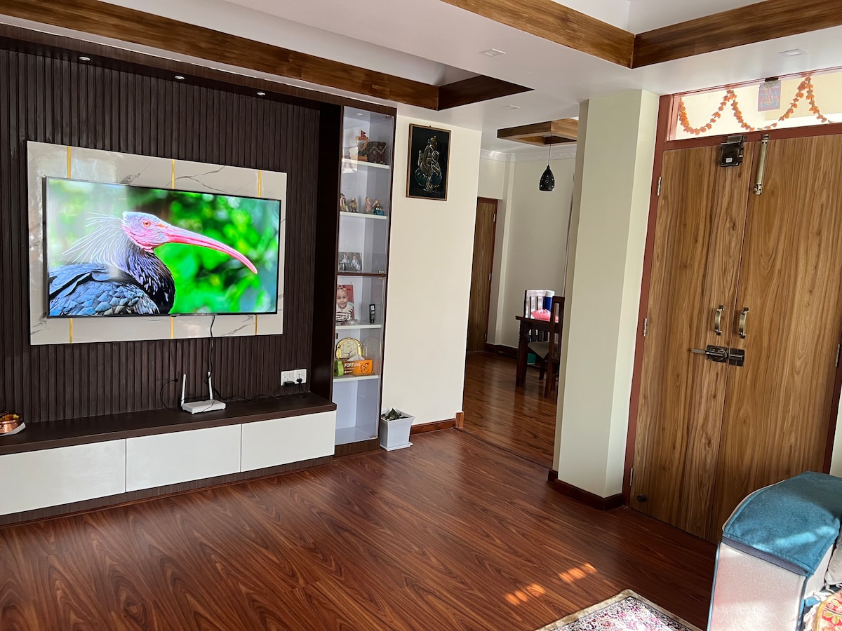 ¡Te damos la bienvenida a nuestro relajante departamento en Tokha! Este acogedor alojamiento cuenta con dos dormitorios, uno con aire acondicionado y una acogedora sala de estar perfecta para relajarse. Ubicado en un barrio tranquilo, tendrás fácil acceso a las atracciones locales y a la vibrante vida urbana de Katmandú. Ideal para familias o grupos pequeños, ¡reserva tu estancia hoy mismo para una experiencia memorable! El desayuno y la cena nepalíes tradicionales también están disponibles previa solicitud, con un precio de $ 5 y $ 10 por persona, respectivamente.