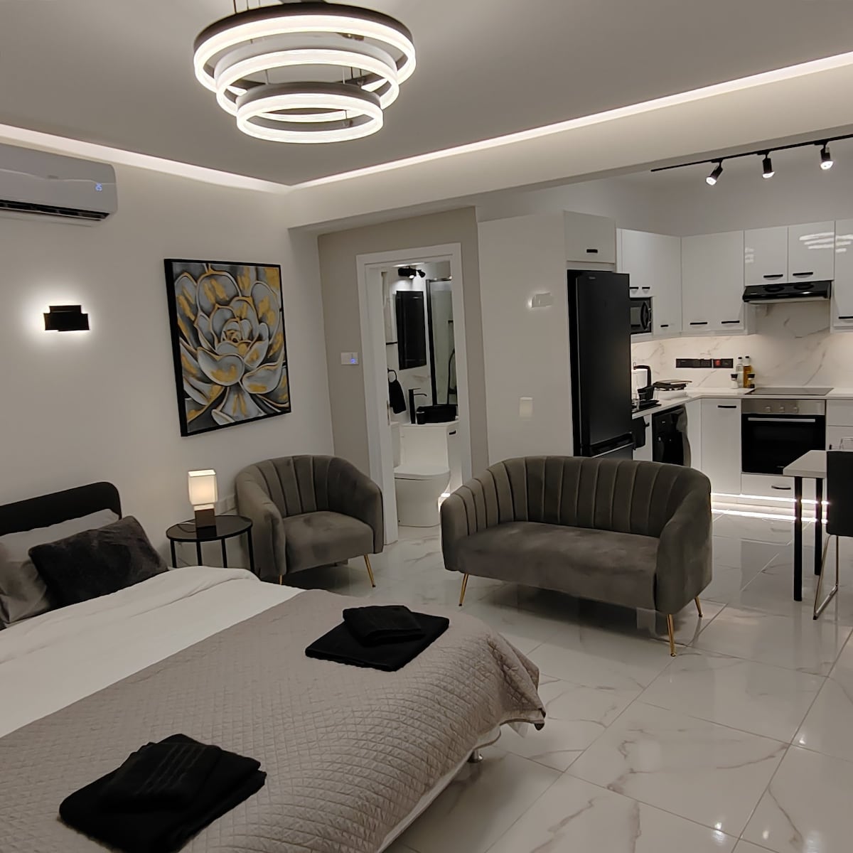 ¡Bienvenido a nuestro nuevo edificio ubicado en el corazón del centro comercial de Larnaca, a solo 400 metros de la famosa playa de Finikoudes! Nuestros 9 apartamentos únicos de diseño de lujo ofrecen la mezcla perfecta de estilo y comodidad. Con cómodas opciones de llegada y salida autónomas, tu estancia es sin complicaciones y nuestro equipo especializado está disponible las 24 horas, los 7 días de la semana, para garantizar una experiencia perfecta. Ya sea que estés aquí por negocios, relajación o aventura, nuestro equipo está listo para ofrecerte una estadía excepcional.