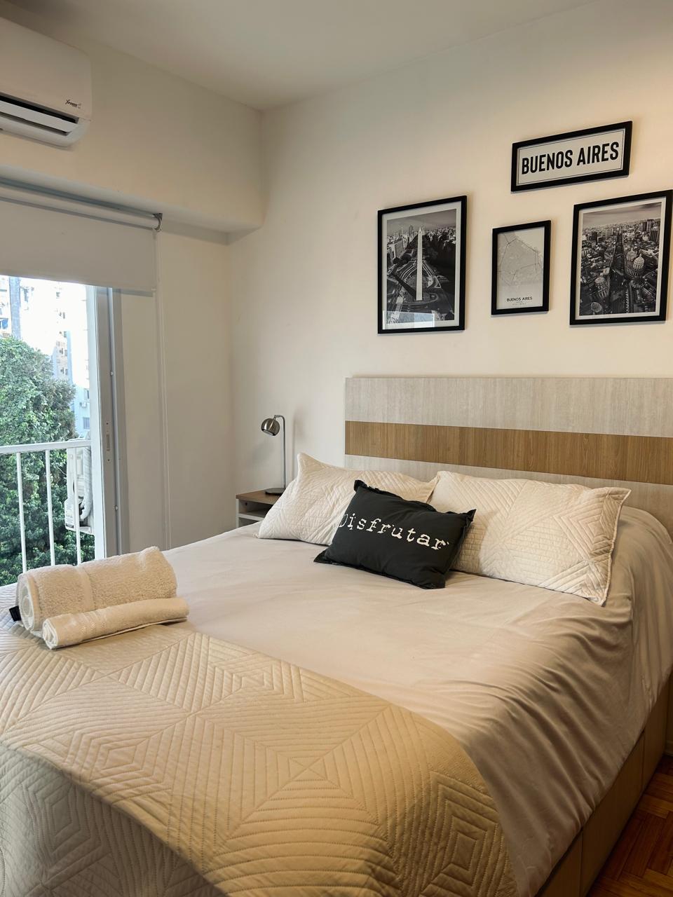 Wake up with the beautiful green view of the trees in the background, in this warm and comfortable apartment in the lively neighborhood of Palermo, surrounded by museums, shops, supermarkets and plenty of nice restaurants/bars to have a drink at sunset...With an unbeatable location it is an excellent starting point to visit the different neighborhoods of Buenos Aires. Building with security 24h/day. Internet speed 100 Mbps The apartment is cleaned with extra precautions and sanitized thoroughly. Apartamento de 50 m2 con vista verde, con balcón, en el corazón de Palermo. Tiene 1 dormitorio con cama matrimonial y 1 sillón cama de 1 plaza en el living. Black out en dormitorio y living. Posee caja de seguridad. Excelente ducha. Equipado con Internet Wi-Fi, posee 2 TV : una de 42" en el living y otra de 32" en la habitación con Netflix, 2 aires acondicionados, calefacción, microondas, tostadora, 1 gran heladera, cafetera y termo eléctrico, tender extensible para el secado de la ropa, plancha y tabla de planchar. El departamento ha sido reformado en mayo 2016, esto incluye pisos nuevos, colchón nuevo de alta calidad así como ropa blanca. En diciembre 2016 se colocó una cocina nueva, eléctrica. Me encuentro disponible en el celular para cualquier solicitud, consulta o recomendaciones sobre la ciudad de Buenos Aires o sobre el departamento. Apartment located in a safe and lively area, with a fantastic location that includes green spaces and an important gastronomic and cultural center very much appreciated of the city. Near the main cultural and touristic attractions. Steps from all means of public transport. Walking distance to Malba Museum. Only 10' from the Jorge Newbery National Airport. Ubicación muy práctica para moverse en BA con todos los medios de transporte públicos a 3 cuadras en Av.Las Heras y a 1 cuadra en Av.Libertador. Personas adicionales sin cargo. Se hace una limpieza general por semana con cambio de ropa blanca sin cargo. El departamento tiene puerta blindada y abajo en la recepción hay guardias de seguridad las 24h. Posee caja de seguridad.