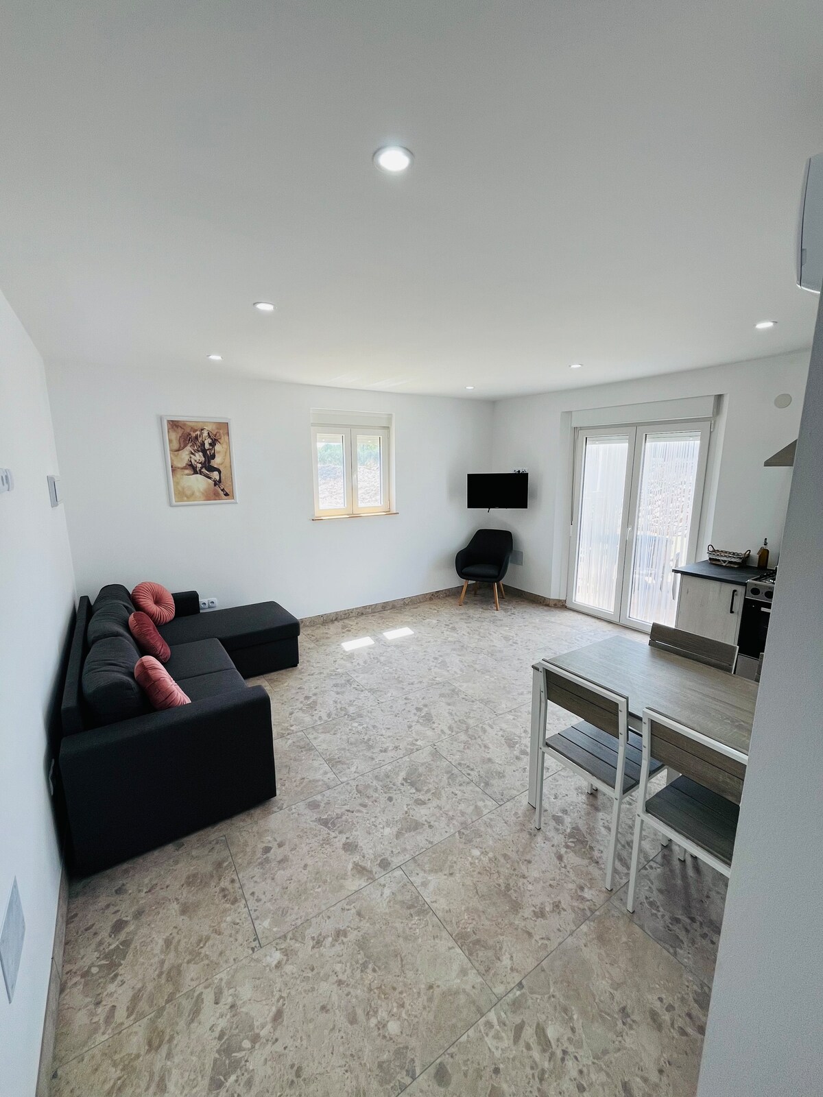 El departamento forma el piso superior de nuestro cortijo tradicional español. Está situado en la tranquila y pacífica zona residencial de La Perla , a pocos pasos del bonito pueblo de Arboleas con todos los servicios y cerca de la ciudad de Albox . Estar enclavado en el corazón del hermoso valle del Almanzora lo convierte en un lugar ideal para caminar , andar en bicicleta y explorar la zona. Las playas de Vera Playa, Puerta Ray y Garrucha están a 25 minutos en coche y Mojacar Playa a 35 minutos.