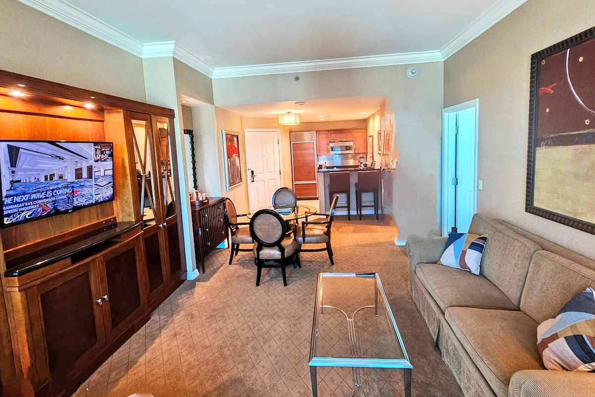 ¡Olvídate de las tarifas del resort y AHORRA 50 $ AL DÍA! ACCESO GRATUITO A: piscinas, gimnasio, servicio de aparcacoches (sujeto a disponibilidad) y aparcamiento en MGM Grand *El personal de limpieza sigue las directrices de los CDC * Seguridad las 24 horas y check-in en recepción * A poca distancia a pie de MGM Grand y The Las Vegas Strip bajo pasarela cubierta * Cama tamaño king y sofá cama tamaño queen * Wifi gratuito y televisión * Jacuzzi. * Restaurante, bar y Starbucks ubicados en la planta baja.