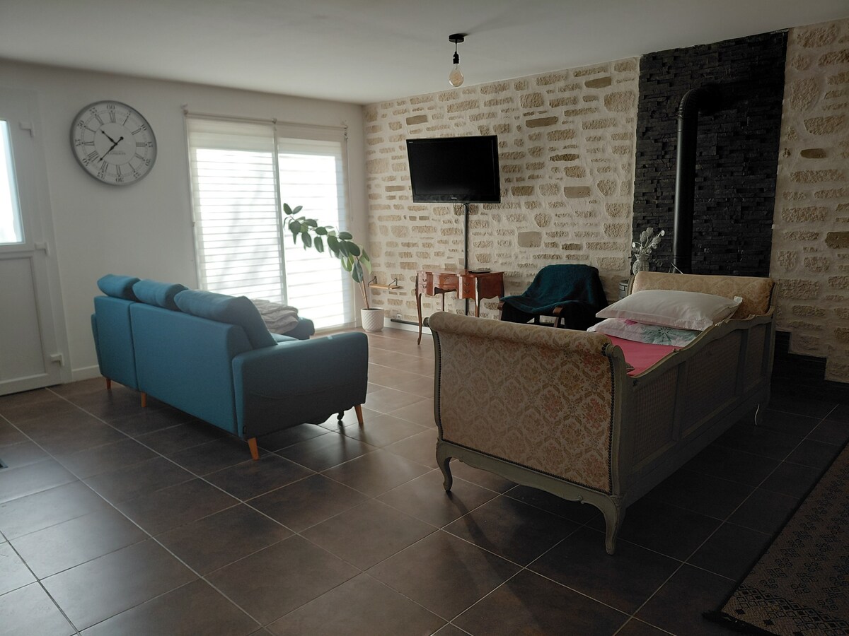 Pequeña casa con encanto totalmente renovada, a solo 7 minutos a pie del centro. Ideal para 2 a 4 personas, ofrece un amplio dormitorio, un acogedor salón con sofá cama, una cocina equipada (horno, microondas, cafetera Tassimo, vajilla...) y un moderno cuarto de baño. Decoración cuidada, wifi, TV, ropa de cama y toallas incluidas. Barrio tranquilo, aparcamiento gratuito y fácil justo en frente de la casa. Estaremos encantados de recibirle y ayudarle a descubrir nuestra hermosa región.
