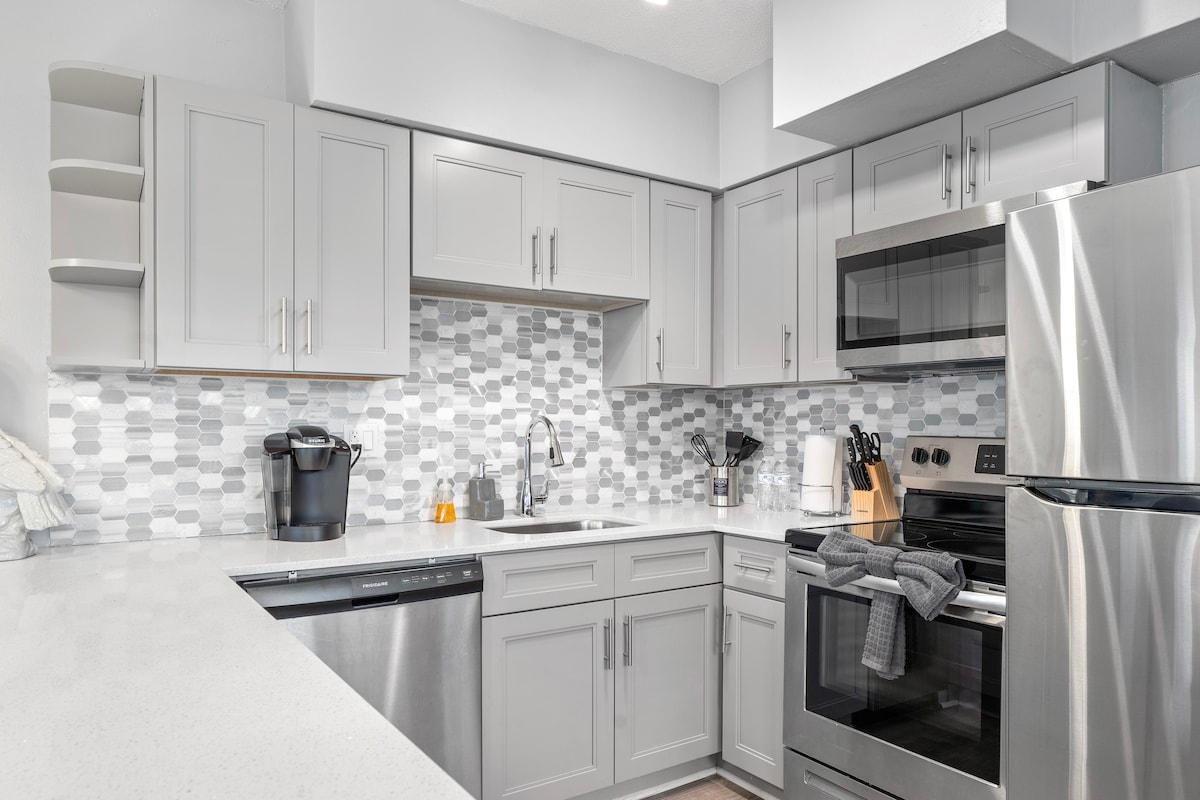 💰No nickel & diming — AirBnb & cleaning fees in nightly rate! 👙 New resort-style tropical pool & hottub 🏠 Super stylish & comfortable 🌆 2 mi to beach & downtown. 🛌🏽 Westin Heavenly Bed; ultimate comfort and sleep ✅ Kitchen is fully stocked; 🏖️ Beach chairs, towels, & sport-brellas available for you. 🐶 Low pet fee 💻 WFH ready - Super high speed internet. 📺 Large Smart TVs in both bedrooms & living rooms 😊 Hosts with a service heart (we’re here to make your trip perfect!!)