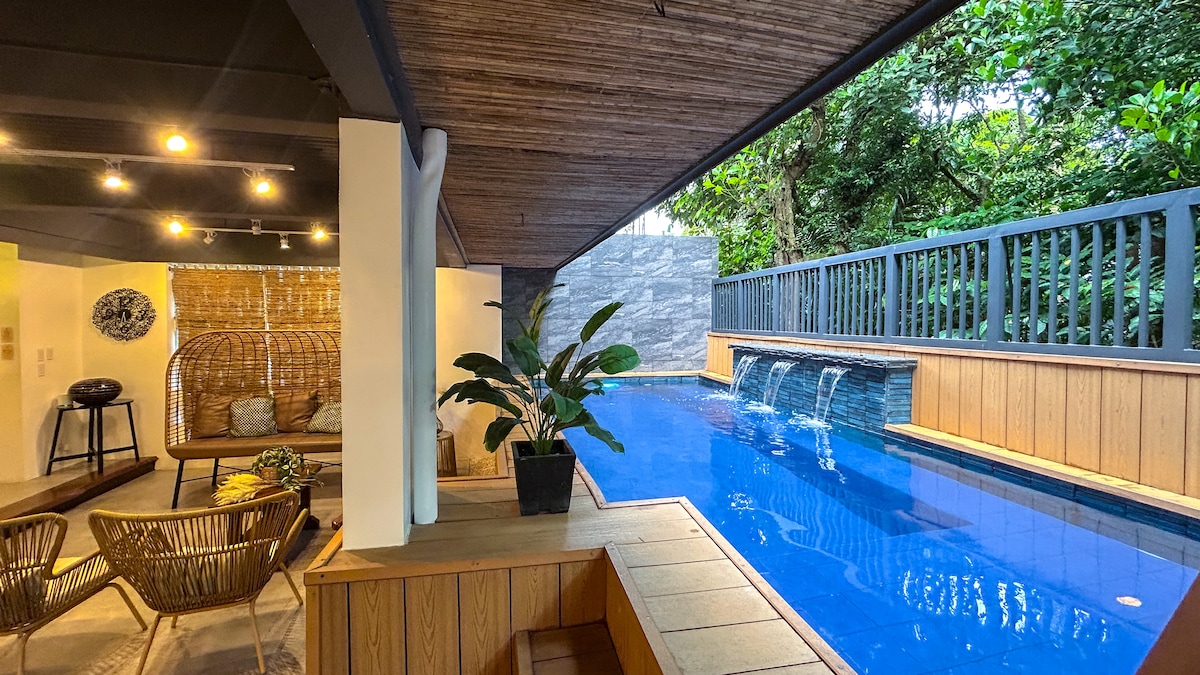 Disfruta de la brisa fresca de Tagaytay mientras te sumerges en un cálido jacuzzi o nadas en una piscina infinita cubierta en esta villa de nueva construcción, a solo una hora en coche de Manila. La piscina tiene cascadas y luces LED incorporadas para animar la noche. También se calienta a tiempo para asegurar a los huéspedes la calidez en la piscina, un complemento perfecto para la temperatura fresca de la villa.
