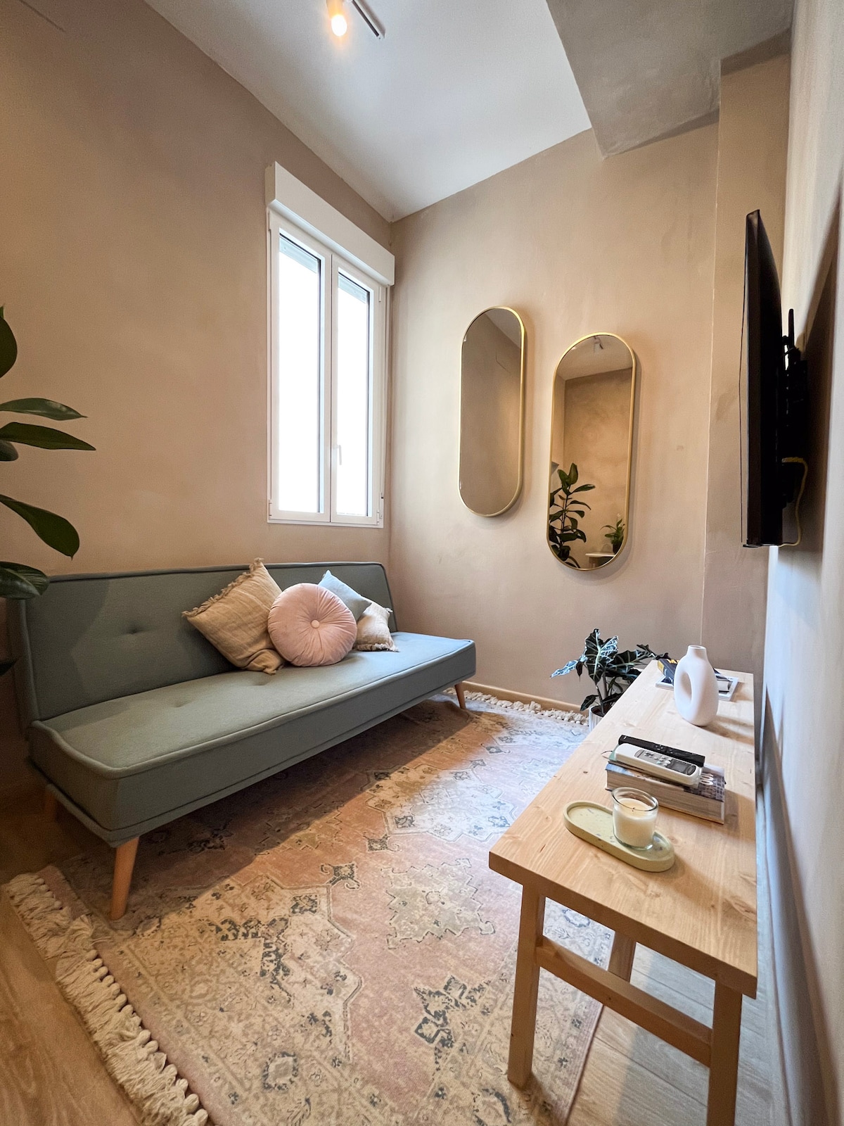 Apartamento de diseño, ubicado en el barrio La Latina, es una joya subterránea de 160 m2 que puede alojar hasta 4 personas. Con 2 habitaciones elegantes y un despacho separado con un sofá cama adicional. Aunque es un bajo, su interior reformado y moderno sorprende con su estilo diáfano y abierto. Ten en cuenta que la luz es limitada debido a su ubicación y que no encontrarás balcones ni grandes ventanales. Disfruta de la TV a través de Chromecast. Se proporciona ropa de cama y toallas.