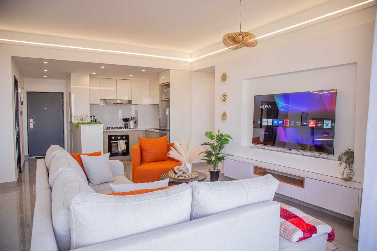 Relájate en este refugio único y tranquilo de 1 cama. Es un departamento nuevo de 1 cama;limpio con una cama tamaño queen. Está equipado con excelentes duchas de agua caliente, cómodos sofás modernos e internet de alta velocidad. Encontrarás una cocina bien equipada, un concepto minimalista y unas vistas impresionantes de la ciudad. Cuenta con un generador de respaldo completo, una piscina climatizada, un gimnasio de última generación y un área de juegos para niños. La ubicación también es excelente con transporte gratuito.