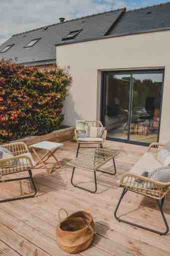 Charmante maison en campagne avec terrasse extérieure et à proximité du Golfe du Morbihan. Elle possède une pièce de vie avec cuisine ouverte et 2 chambres, chacune équipée d’un lit double et d’un WC indépendant. La maison accueille 2 à 4 personnes avec le confort nécessaire. Vous serez idéalement situé sur le Golfe du Morbihan, à proximité de ses îles, Vannes, Quiberon... Le ménage et le linge de maison (draps, serviettes, tapis de bain, torchons) sont FOURNIS ET INCLUS dans la réservation.