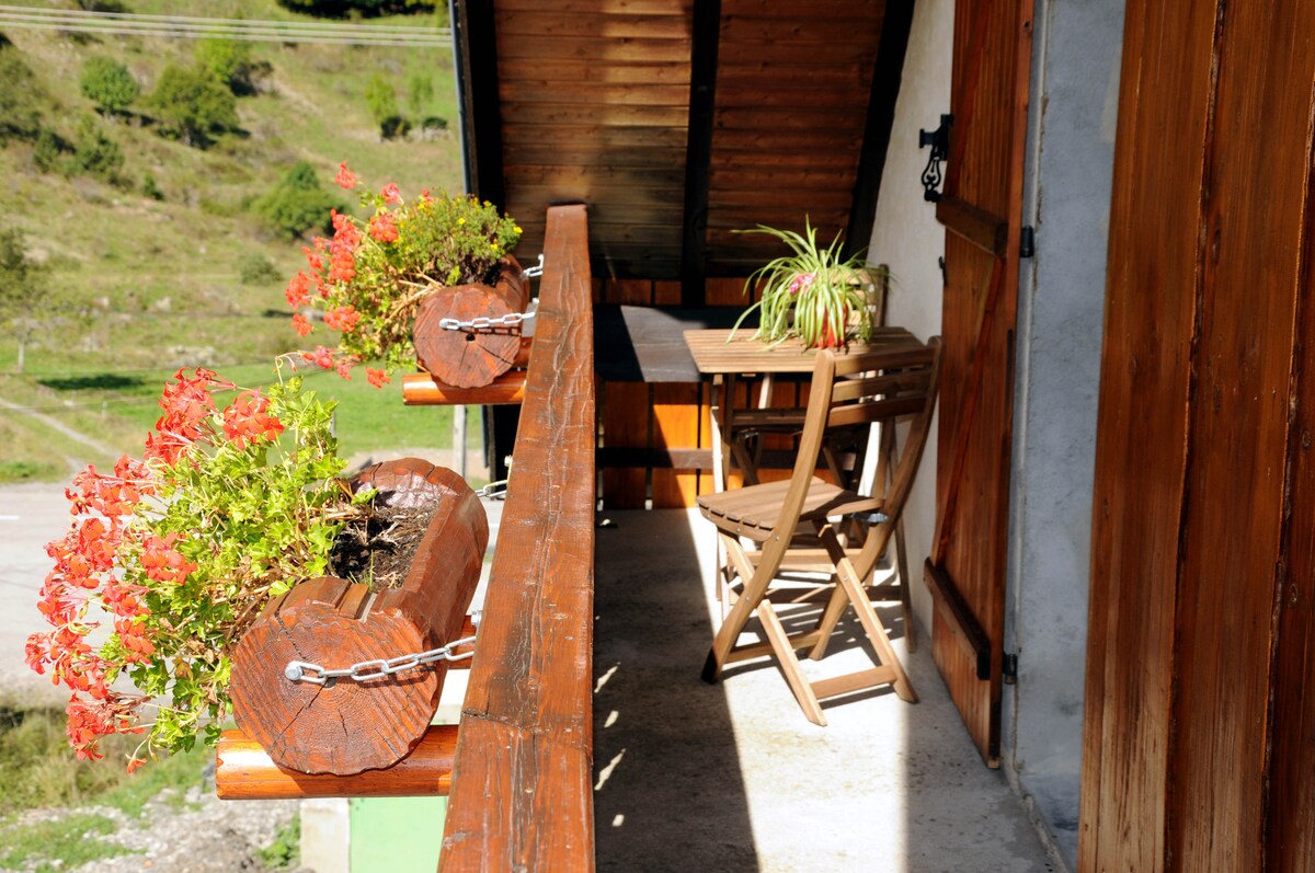¡Te ofrecemos alojarte en un pequeño chalet típico de los Altos Alpes y 100% de fabricación local! Con una superficie de 30 m2, consta de una gran sala de estar/cocina, una habitación independiente y un baño/WC. ¡Wifi, TV y espacio de estacionamiento privado! En la terraza exterior, tendrás un jacuzzi privado frente a las montañas que te rodean. ¿Cómo resumir tu estadía en uno de nuestros chalets en 3 palabras? ¡Cocooning, bienestar y relajación!