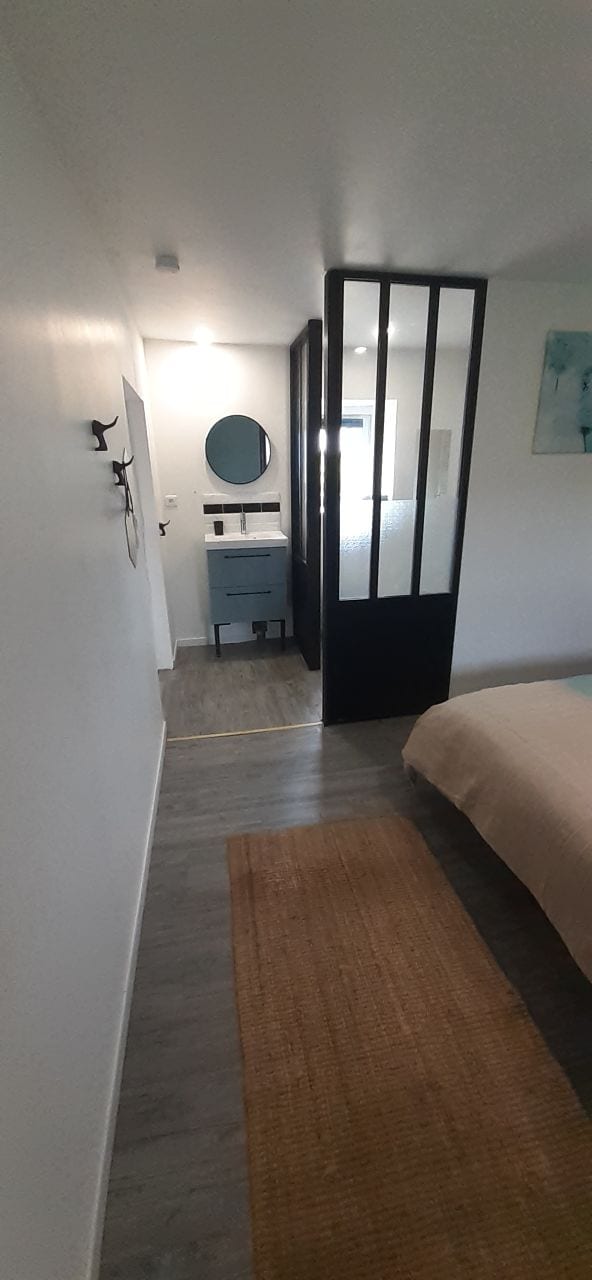 "Le boudoir", bonito estudio independiente con una cuidada decoración en la planta baja de una casa renovada del siglo XVI. Nuestra propiedad, en el centro del pueblo. Se encuentra a 20 minutos del centro de Le Mans y a 10 minutos de la autovía. Quedará seducido por el encanto y la tranquilidad del lugar y estaremos encantados de recibirle en la convivencia. Podrá disfrutar de los exteriores, se ponen a su disposición mesas. No dude en ponerse en contacto con nosotros para obtener más información.