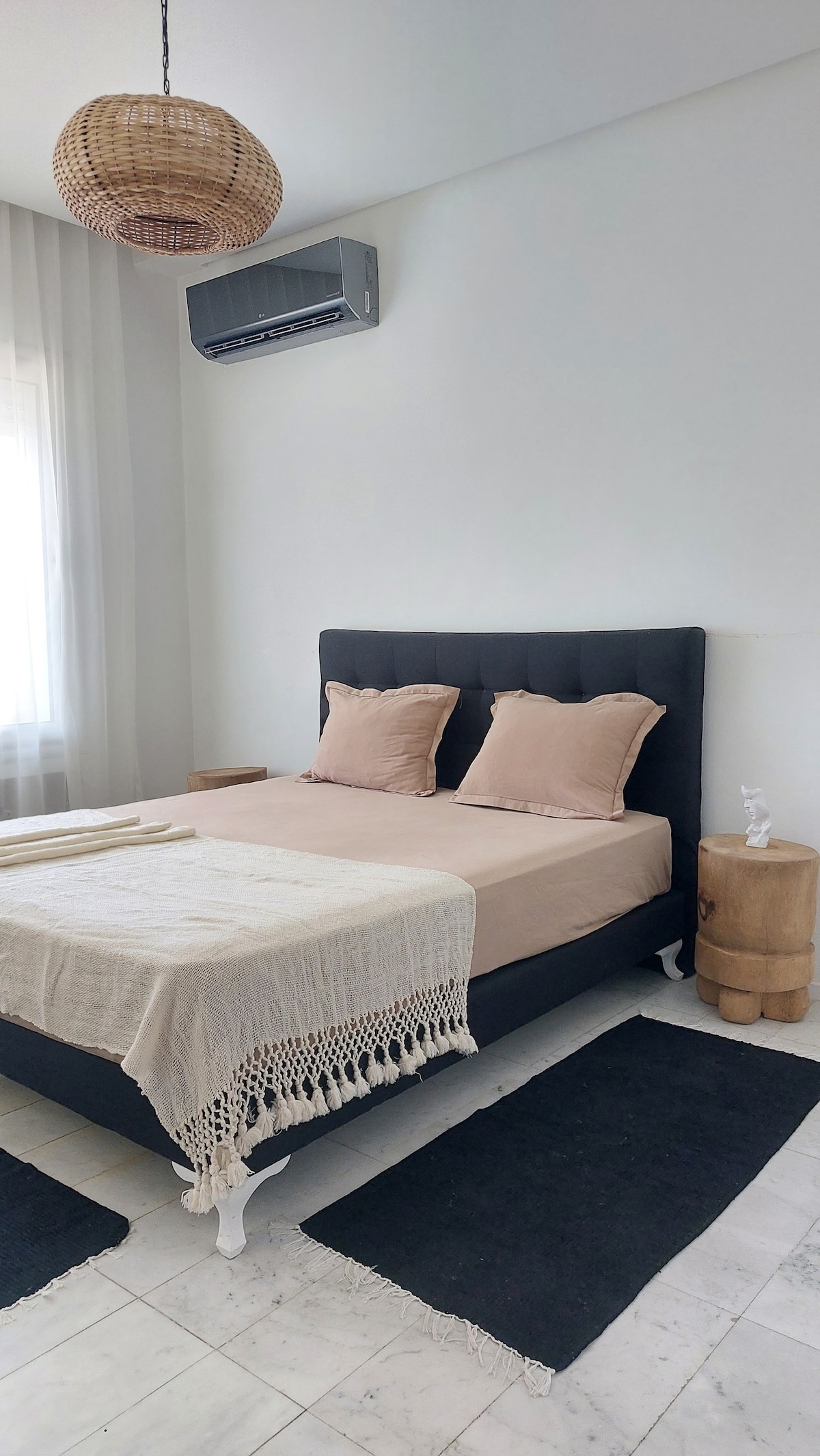 Bienvenido a nuestro alojamiento «ethnic chic», donde la tradición y la modernidad se encuentran. A 10 minutos de la playa y cerca del Carrefour, del centro comercial Tunisia Mall y del distrito de negocios Lac 2, se encuentra a 5 minutos de Sidi Bou Said, Cartago y La Marsa, y a 10 minutos del aeropuerto. Disfrute de nuestro hotel de 5 estrellas con colchones ultracómodos, Netflix gratis, cafetera Nespresso con cápsulas gratuitas y una terraza para desayunar. ¡Viva una experiencia única de elegancia étnica!