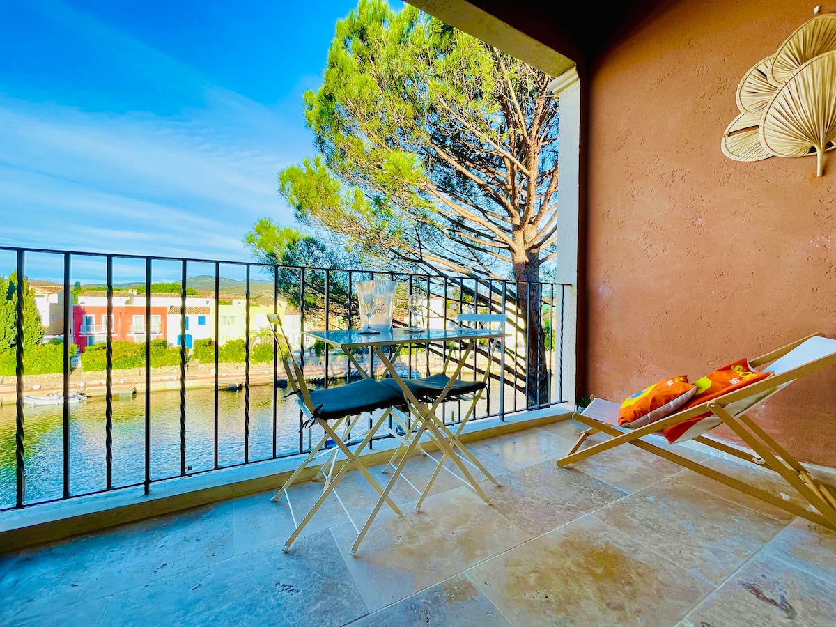 Estudio clasificado y nueve vistas a los canales y Port-Grimaud ⚓️ Situado entre St-Tropez y Port-Grimaud⛵️ Totalmente equipado , Excelente ubicación 🌅🌴 🏊♂️ piscina 1 de abril - 15 de septiembre 🛌 Ropa de cama 👌 👁️Vista excepcional , 🚴♂️Pista para bicicletas para llegar a Saint-Tropez , Port-Grimaud , Sainte-Maxime . 🚤Lanzadera ( barco en temporada alta) 🚘Garaje seguro con ubicación libre a 100 m 🏖️Playa a pie de Port - Grimaud ( 20 min ) 🏖️Playa de los Marines de Cogolin a pie ( 15 minutos ) 🛒Comercios 🦦Disfruta de este relajante lugar Totalmente equipado🌴