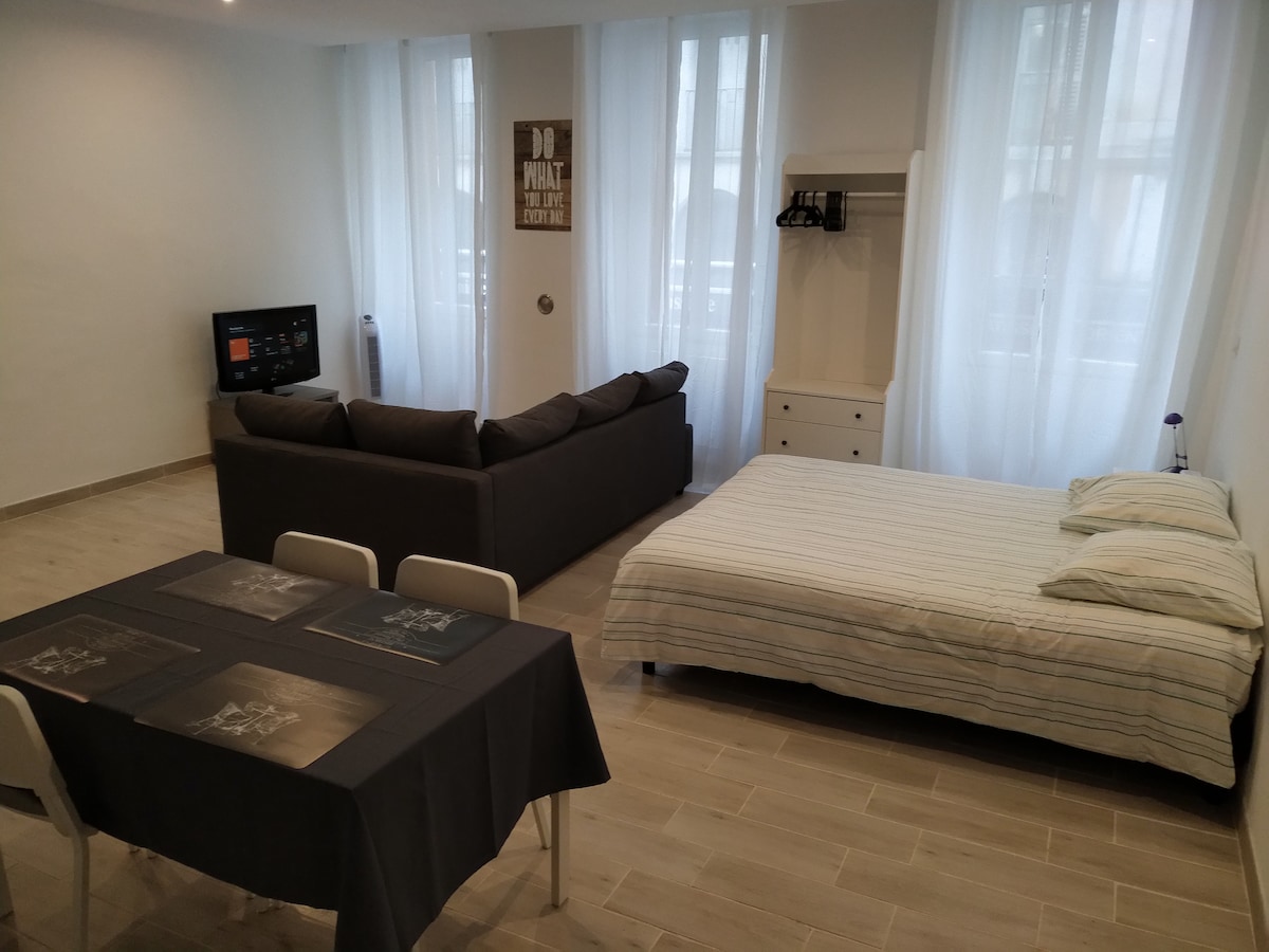 pequeño apartamento de 21 m2 que consta de una sala de estar ( con cama plegable que tiene un colchón real y no un sofá cama), una cocina y baño separados. muy luminoso en el centro de la ciudad a dos pasos del puerto viejo y el transporte público está totalmente equipado solo necesita sus cosas personales