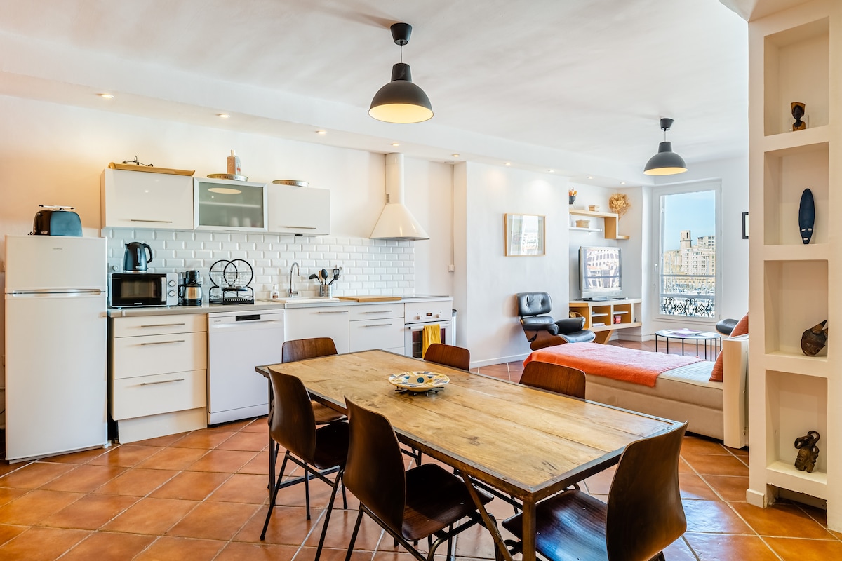 ¿Quieres alquilar un apartamento en el puerto antiguo? ¡No busques más, lo encontraste! En primera línea del Puerto Viejo, 3 ventanas con vistas excepcionales de los veleros, el Hôtel Dieu, La Mairie, Fort Saint Jean. Cerrar el estacionamiento de pago " La Criée" y " Place aux Oils". Estación de metro Vieux Port cerca, autobús, tranvía. La primera playa, " Les Catalans " está A 10 MINUTOS A PIE. El check-in se realiza de forma perfectamente independiente, digicode y caja de seguridad.