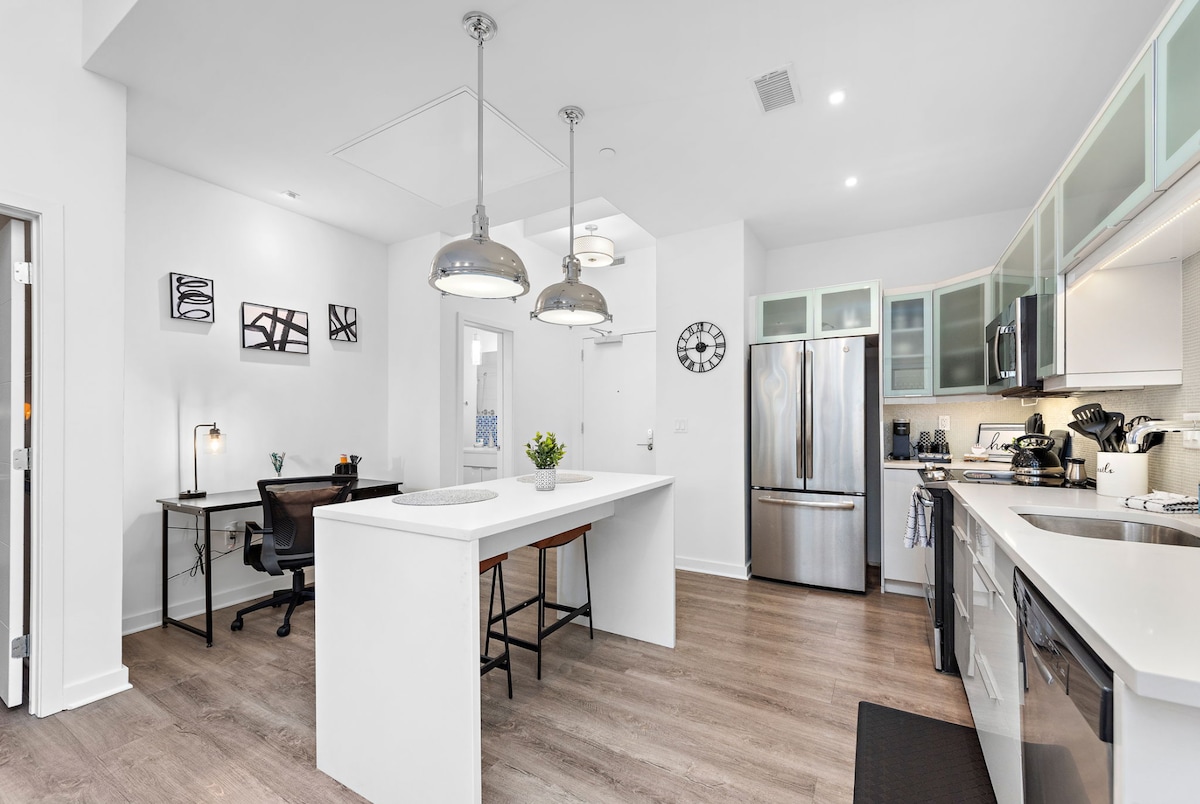 Apartamento de lujo con cama tamaño king en el centro de Kansas City, estacionamiento gratuito, gimnasio y sillón de masaje