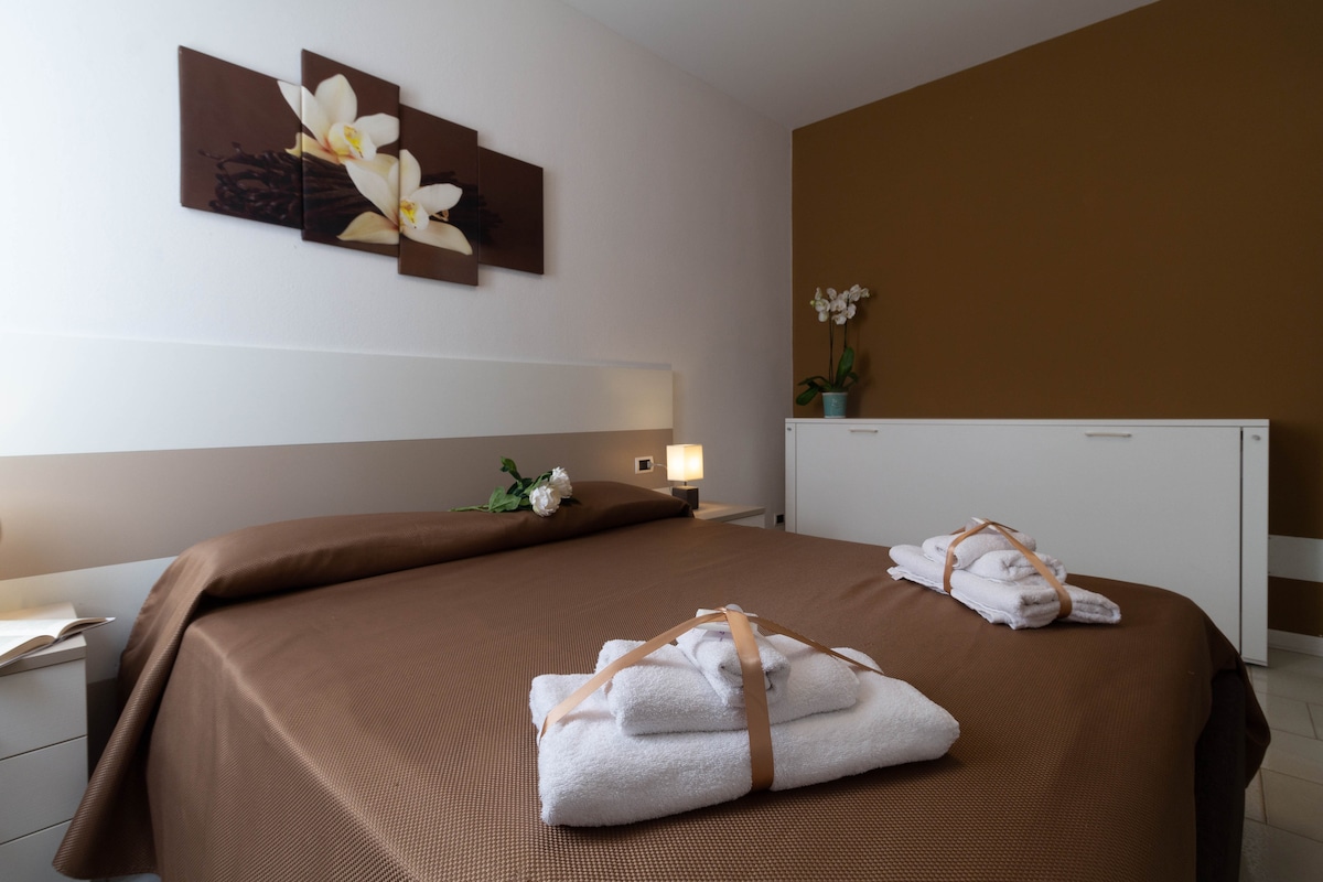 Luminoso apartamento de dos habitaciones situado en la 3.ª planta con pequeño ascensor con vistas al lago y a la montaña a pocos pasos del centro del pueblo que consta de: amplia sala (sofá [no cama], TV, wifi), cocina equipada (cafetera italiana, hervidor, tostadora, placa de cocción, microondas, nevera), dormitorio doble con acceso al balcón. Baño con ventana, lavabo, inodoro, bidé, ducha y lavadora. Dispone de una plaza de aparcamiento reservada y, previa solicitud, existe la posibilidad de disponer de un espacio cerrado y cubierto para bicicletas.