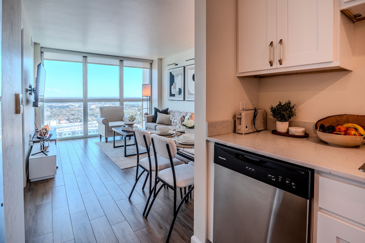 Welcome to Level 19, a modern 19th-floor retreat in Downtown Fort Myers. Enjoy beautiful skyline views, warm décor, and a fully equipped kitchen. Relax in the living area with Queen sofa bed and unwind at the pool, hot tub, or gym. Designed for comfort, this King suite hosts up to four guests. City Views | Pool | Hot Tub | Gym | King Bed | Queen Sofa Bed | Wi-Fi | Smart TV Dining: 2–5 min walk | Edison & Ford 5–10 min | Fort Myers Beach 25–30 min | RSW 25 min