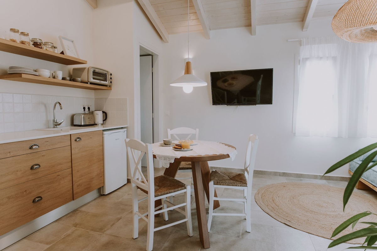 Todos los apartamentos tienen una sensación espaciosa y mucha luz, baño grande, cocina bien equipada, cómodas camas dobles con colchón anatómico. Todas las habitaciones de los apartamentos están totalmente climatizadas y tienen ventiladores de techo en los dormitorios. El diseño combina materiales naturales, colores claros con un «toque griego». El patio trasero es para todos nuestros huéspedes. Hay una amplia zona de aparcamiento gratuito a 150 metros. Disfruta paseando por los hermosos callejones, prueba las delicias locales y mucho más. ¡Te damos la bienvenida a Eriel, donde te sentirás como en casa!