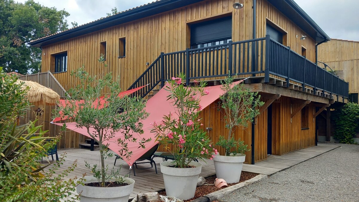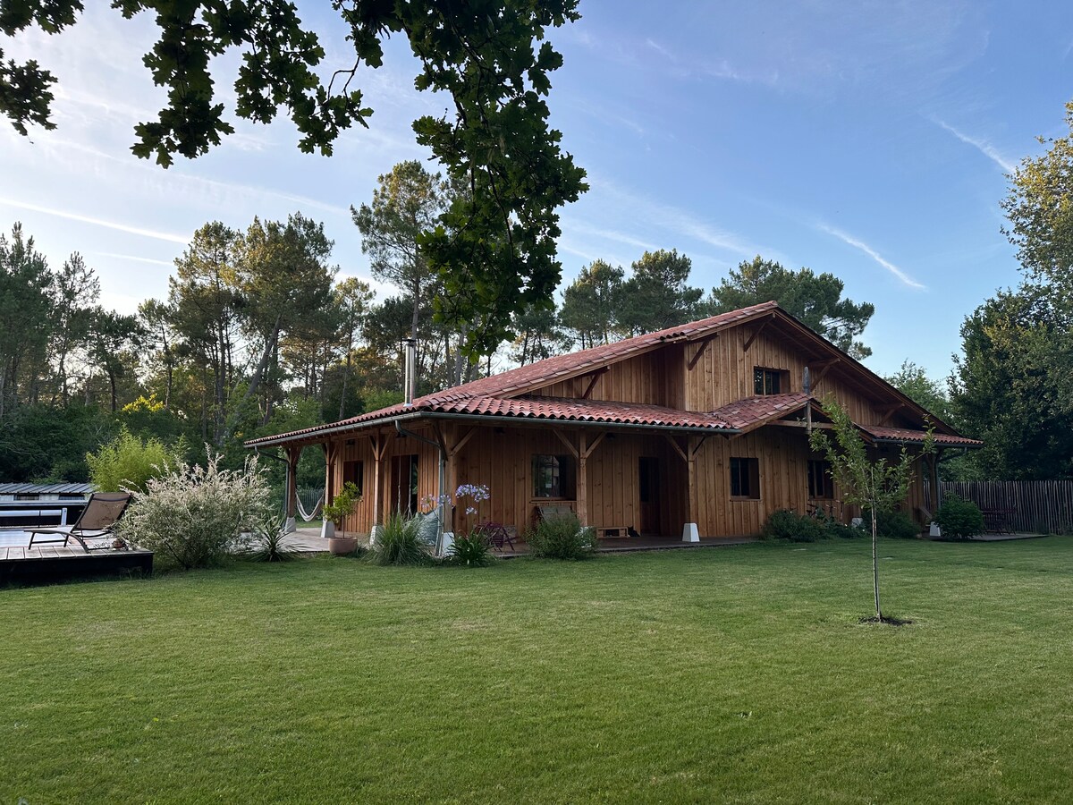 Casa de madera elegante y acogedora a 5 minutos de la playa y del puerto