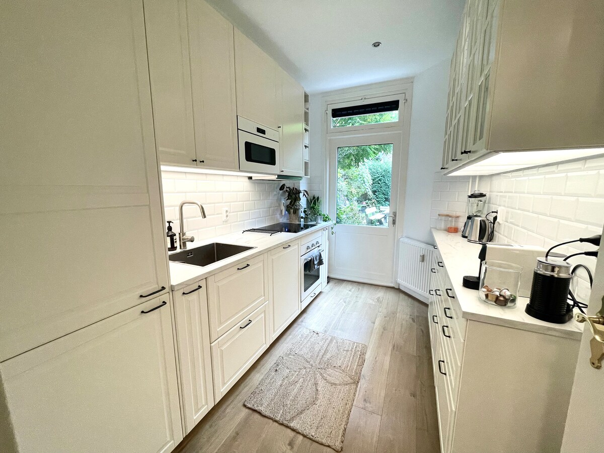 ¡Alójate en el corazón del verde y tranquilo barrio Plantage de Ámsterdam! Nuestro apartamento de 2 dormitorios ocupa toda la planta baja de una casa adosada del siglo XIX y es perfecto para 4 personas. Cada dormitorio tiene su propia ducha y lavabo, además hay un baño separado. Relájate en la amplia sala de estar, diseñada con un toque moderno. Sal y explora nuestro encantador barrio, a solo un corto paseo o en tranvía de las principales atracciones de la ciudad. Ten en cuenta que este es un apartamento para no fumadores.