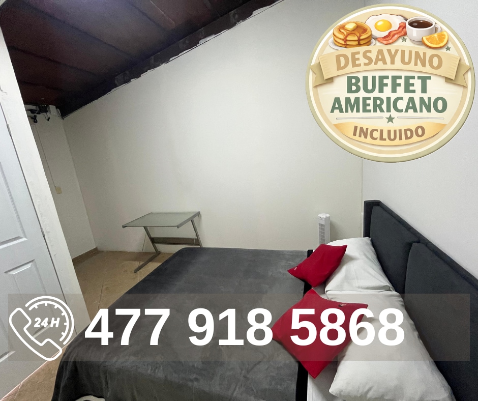 Ubicado en un lugar céntrico y tranquilo en la ciudad, a 5 minutos en coche de la central camionera, el estadio de futbol, la feria, Poliforum, El Forum Cultural y a 15 minutos del centro. Un lugar perfecto para parejas y familia pequeña o estadías de trabajo que buscan comodidad y un ambiente tranquilo Cerca de supermecardos y gimnasio a 1 min. -Aire acondicionado -Wifi -Televisión de 32 pulgadas con cable -Cochera para coches chicos o medianos, también hay espacio para estacionar en la calle.