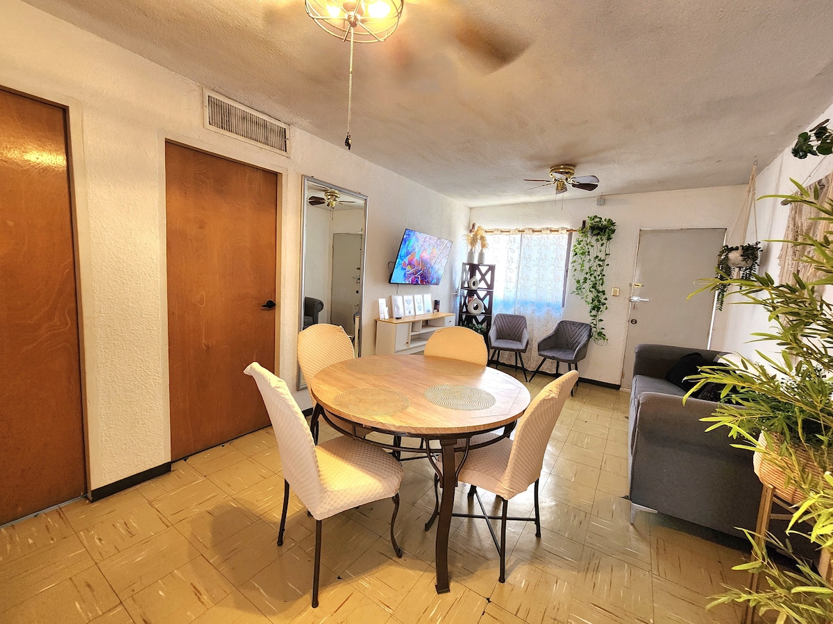 ⚠️ Para que tengas una buena experiecia LEE CON ATENCIÓN: -NO FACTURAMOS -Departamento PLANTA ALTA, UNA RECÁMARA con MiniSplit para UNA PAREJA -Cine en habitación hasta 200' Fire Stick 4k y Alexa con Spotify -TV 55' con Chromecast y PS4 en Sala -Wi-Fi Fibra Óptica 🎬 Netflix, HBO, Disney+, PrimeVideo -Estacionamiento un cajón exclusivo NO TECHADO 🏁 -Plazas Comerciales y Restaurantes 🍴 a 3 min -Oxxo y Farmacia en esquina - Hospitales a 7 min - Aeropuerto a 7 min - Central Autobuses a 5 min