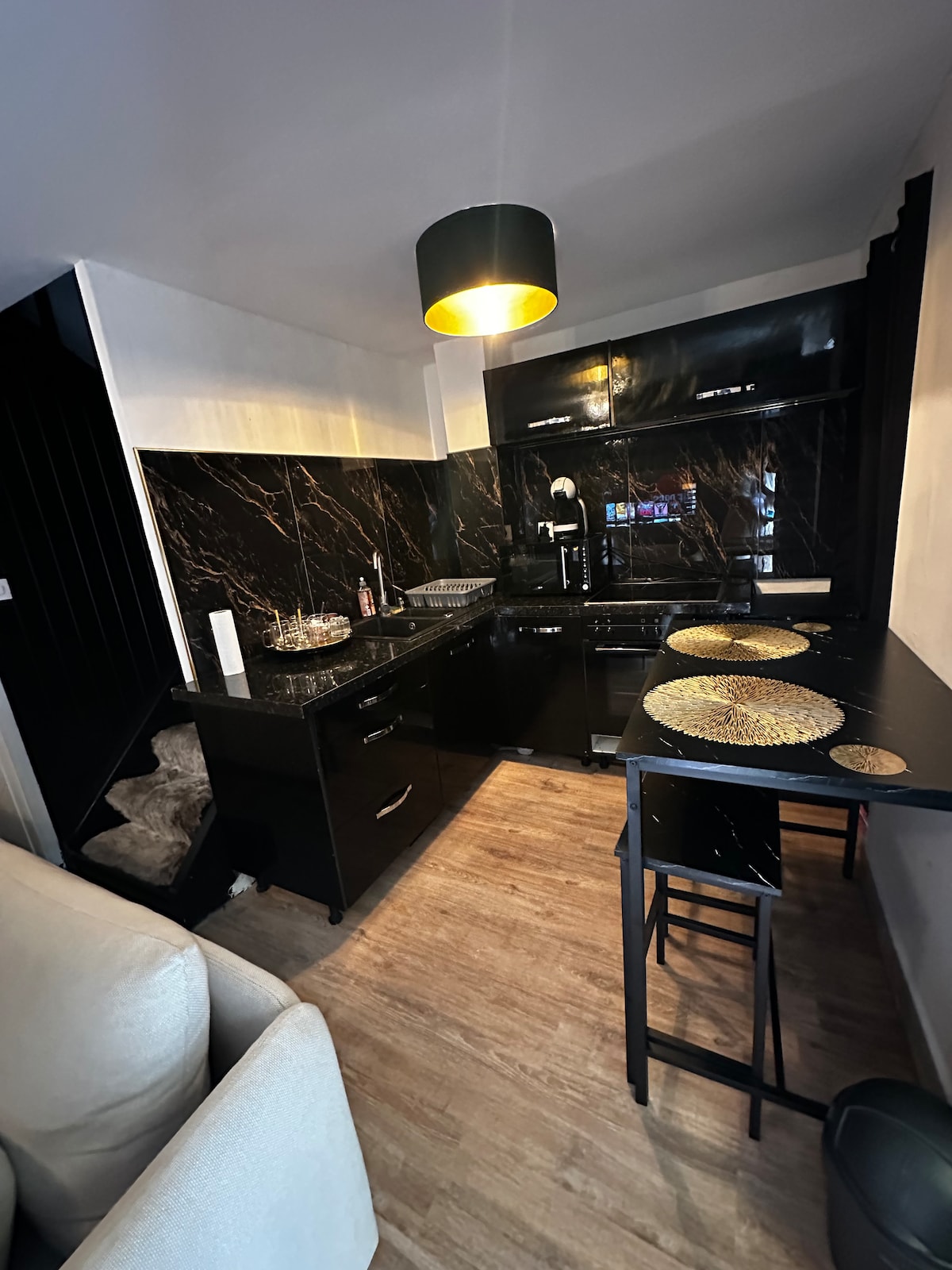💥 Cesta de bienvenida a su llegada 💥 Balneoterapia con agua tibia mantenida, como un jacuzzi real TV 🫧 gigante de 99 pulgadas Cama tamaño king 🎥 ultra cómoda Chimenea 💤 eléctrica 🔥 Tómate un descanso y escapa a este encantador nido de amor, elegante y cálido ✨ El apartamento ha sido cuidadosamente diseñado hasta el último detalle para ofrecerte una experiencia excepcional, combinando relajación y máximo confort. 🥰
