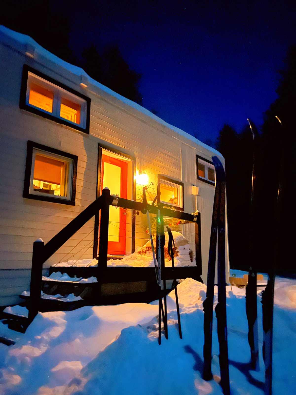 get away. relax. light a fire. smell the wood smoke. curl up with a book. enjoy the peace and calm of the trees and wildlife that surround you. sink into the sofa, wrap yourself in a blanket, and wish you could stay forever. little trähus is minutes from the mont-tremblant ski resort, as well as the quaint mountain town of st-jovite, where you can grab a croissant and coffee, and people watch. it's absolutely magical. Follow us on IG @trahus.tremblant