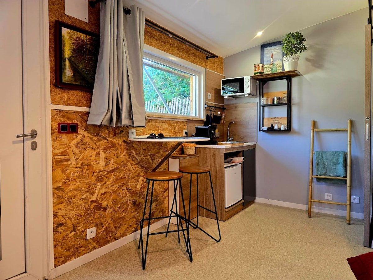 ¡Bienvenido a nuestro pequeño estudio de jardín! Situado en una zona tranquila de Noisy-le-Sec. Ideal para una persona sola o una pareja, este estudio le ofrece un entorno de vida agradable y cómodo. - cocina americana totalmente equipada: cafetera, nevera, microondas, placa vitrocerámica. - 1 cama doble 140x200 - 1 cuarto de baño equipado con ducha y 1 inodoro - 1 pequeña terraza A 20 minutos de la línea 11 del metro (estación Rosny-Bois-Perrier) y a 12 minutos del RER E (estación Noisy le sec)
