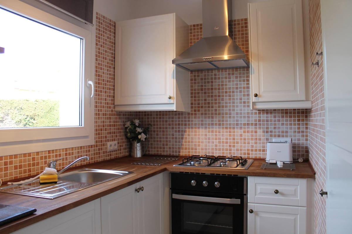 Relajate con toda la familia o amigos en esta casita de lujo. Disfruta de la privacidad exclusiva para ti y los tuyos de todo un jardín, piscina y chill out. Goza de la tranquilidad y de la frescor de un precioso jardín en una zona muy tranquila y solo, 7 minutos a pie de la playa. Podras tomar el sol, hacer barbacoas, siestas debajo un limonero i gozar de l´espacio a l´aire libre sin sentirte encerrado en un piso. Es el sitio perfeto para aquellos que quieren espacio confort y privacidad.