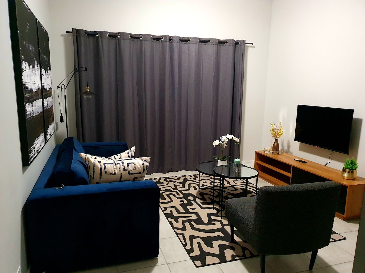 Apartamento tipo estudio privado, totalmente amueblado, moderno, independiente, seguro y totalmente equipado, con energía solar, ¡para que no te veas afectado por los cortes de energía! Situado en un barrio tranquilo y seguro, cerca de todos los principales centros comerciales y zonas de entretenimiento. El espacio es seguro, tranquilo y elegante, recién reformado y perfecto para personas de negocios o parejas que viajan. Ten en cuenta que en este apartamento está estrictamente prohibido fumar. Hay perros muy amables en la propiedad a los que les encanta saludar a los huéspedes a su llegada.