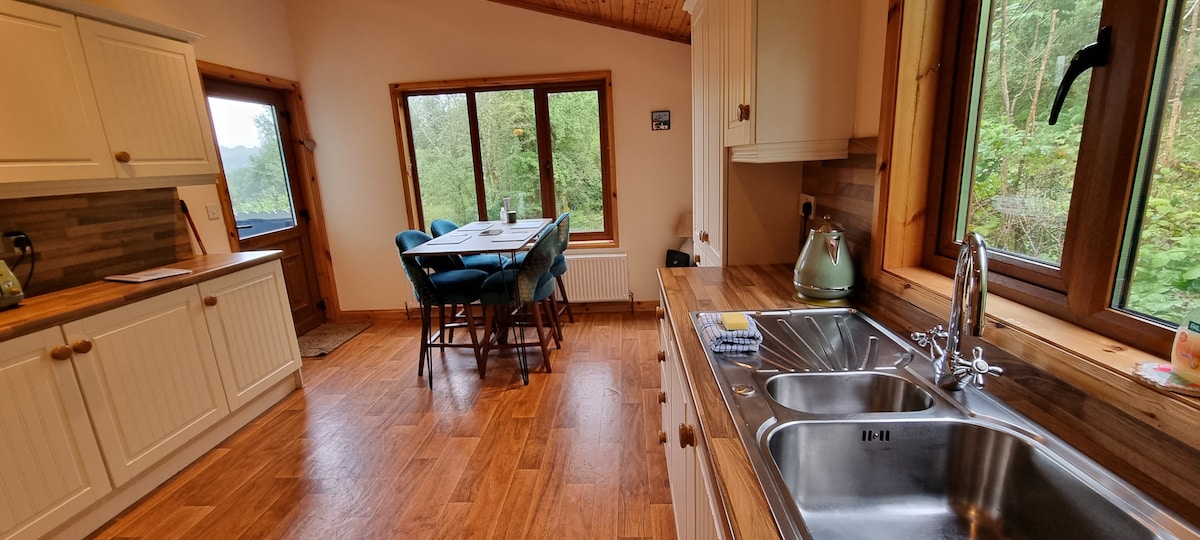 Un verdadero hogar lejos de casa. Relájate y desconecta en nuestra acogedora, luminosa y elegante casa de vacaciones en las hermosas montañas Bluestack, a solo 5 millas de la ciudad de Donegal, la ciudad gastronómica número 1 de Irlanda. Ubicación perfecta para visitar Donegal, hacer senderismo por los Bluestacks, recorrer los lugares de interés o simplemente relajarse en esta impresionante ubicación rural, enclavada en unos pocos acres de terreno de vuelta a la naturaleza lleno de pájaros, mariposas, ciervos salvajes, ardillas rojas y otra vida silvestre justo en tu puerta.