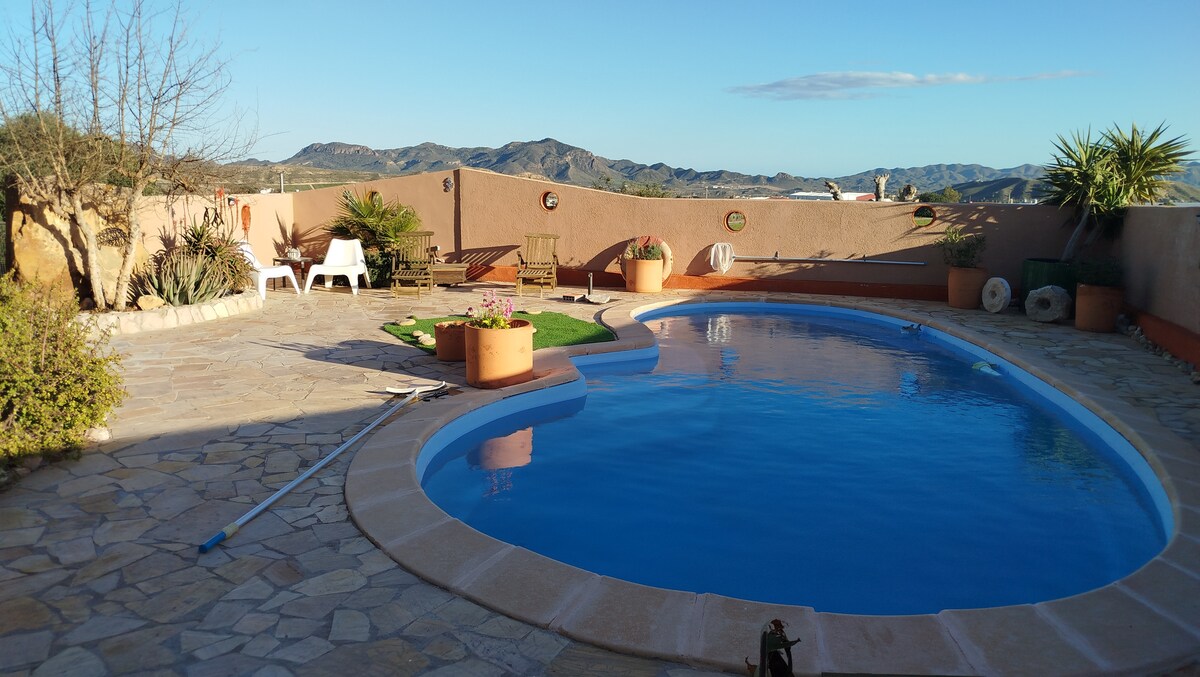 Esta acogedora casa de vacaciones se encuentra lejos del ajetreo turístico. Incrustado en un hermoso paisaje virgen, aún puede llegar al mar y sus playas en poco más de media hora. Hoy con aire acondicionado en el automóvil, un viaje maravilloso. En esta casa te mimas. El maravilloso y antiguo Cortijo ha sido cuidadosamente renovado. La casa está ubicada en el pequeño pueblo de Gochar, cerca de Sorbas. Donde comprar y beber café y comer bien es una razón agradable para salir de casa.