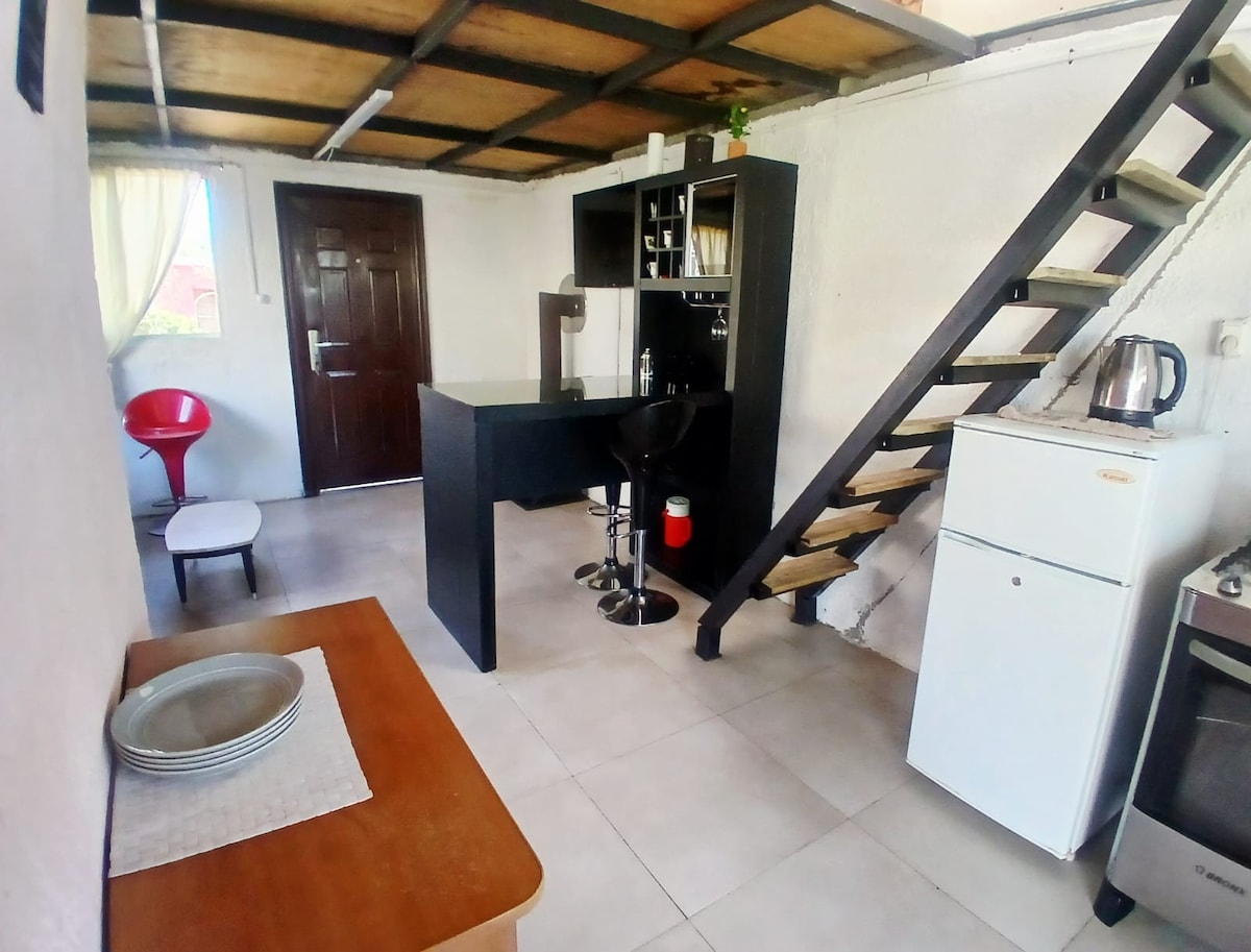 Apartamento de estilo Art Decó frente al Mercado del Puerto, tipo duplex, con baño privado, balcón y ventanas de piso a techo que dan a peatonal turística Pérez Castellano. Ahora el cuarto cuenta con sommier de dos plazas. Fué pintado en enero del 2019 y se plastificó el piso del cuarto. Cuenta con varias comodidades como sala de estar, wifi, y una nutrida biblioteca con clásicos de la literatura uruguaya y latinoamericana.