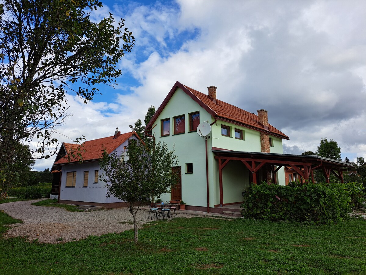 Nuestra casa familiar se encuentra en un pueblo tranquilo, a 5 km de los lagos de Plitvice. Nueva y moderna habitación triple de lujo cuenta con baño privado, balcón, entrada, TV de pantalla plana con canales vía satélite,aire acondicionado y conexión wifi gratuita. Los huéspedes pueden relajarse en el verde del patio trasero