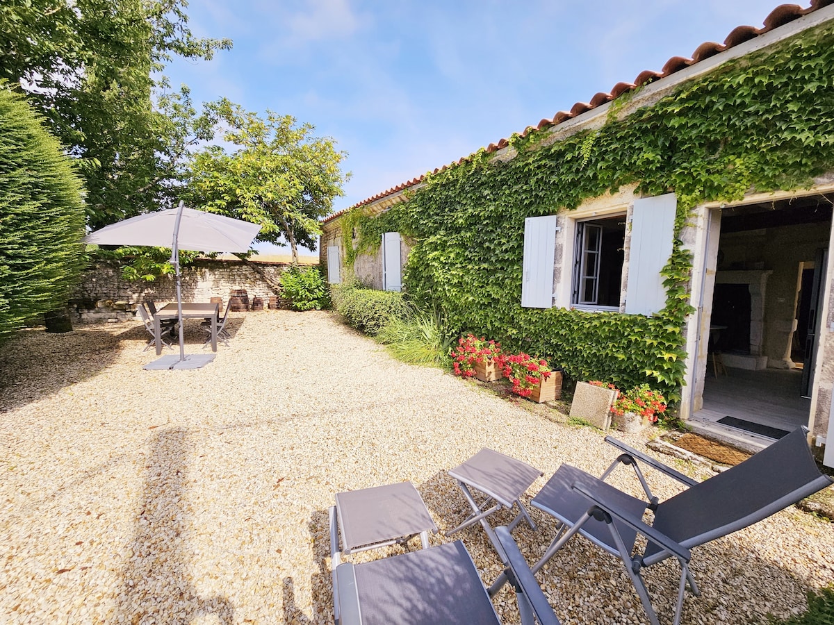 Élégante et charmante maison avec terrasse couverte. Une évasion paisible au cœur de notre belle Charente! Profitez de cette jolie maison qui se situe à 500 m de la Flow vélo et qui offre de bons moments en perspective en famille, amis ou simplement pour un séjour professionnel. Ce lieu unique récemment rénové à été pensé pour vous permettre de passer et de partager des moments inoubliables!
