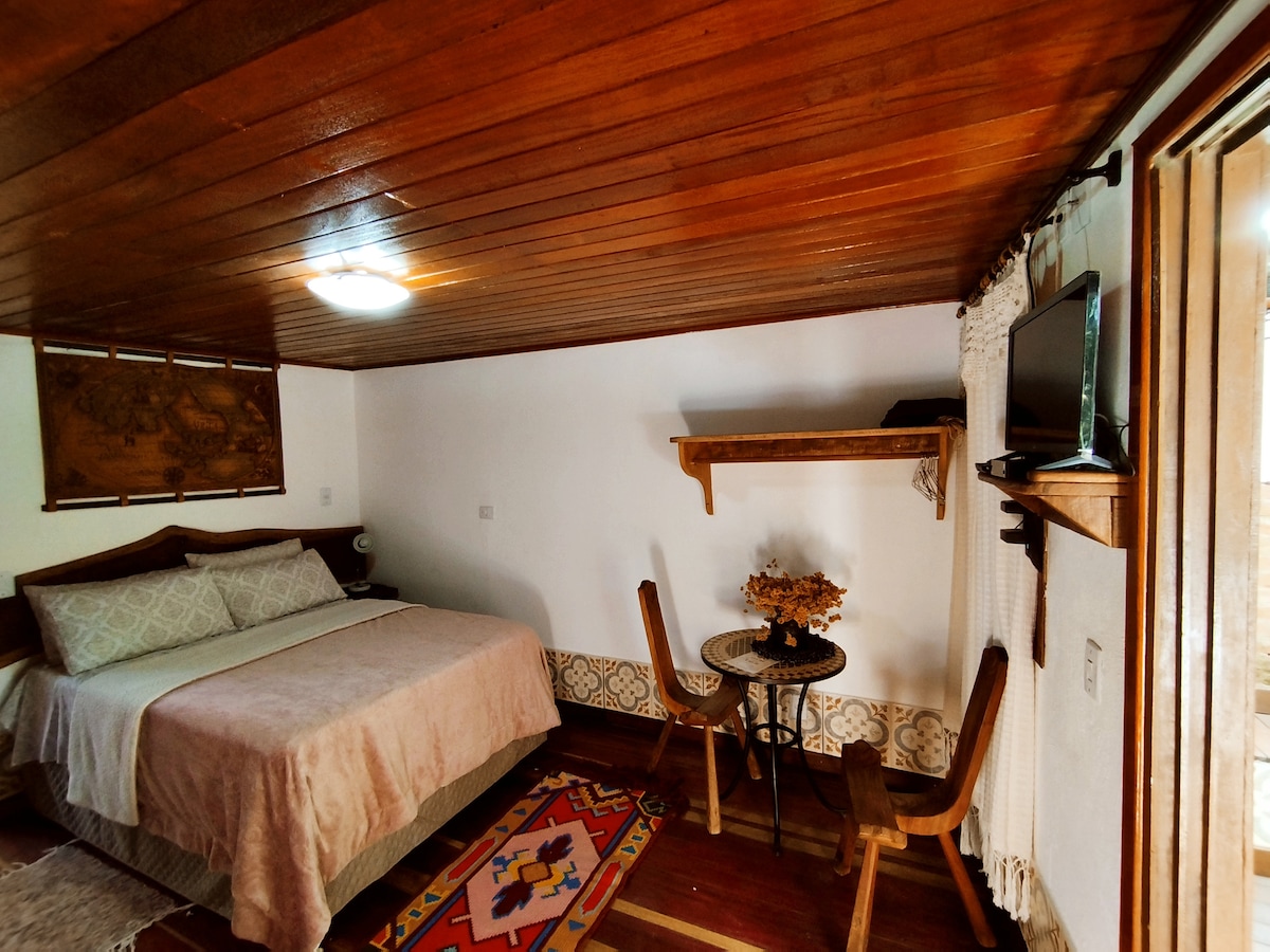 Um lugar ideal para casais, famílias, comemorações intimistas, na charmosa vila rural de São Sebastião do Monte Verde. Tenha exclusividade ao efetuar a reserva, vocês escolhem o quarto e desfrutam de toda a propriedade c/ total privacidade, sem outros hóspedes. Suítes c/ lareira e chalés compactos, cozinha equipada, fogão a lenha, área externa p/ refeições, churrasqueira, piscina, bilhar, totó, freezer, estacionamento privativo e vista incrível da serra. Próximo às cachoeiras + lindas d região.